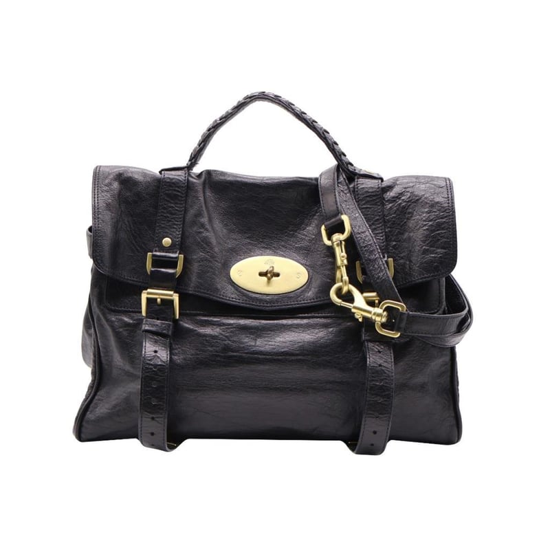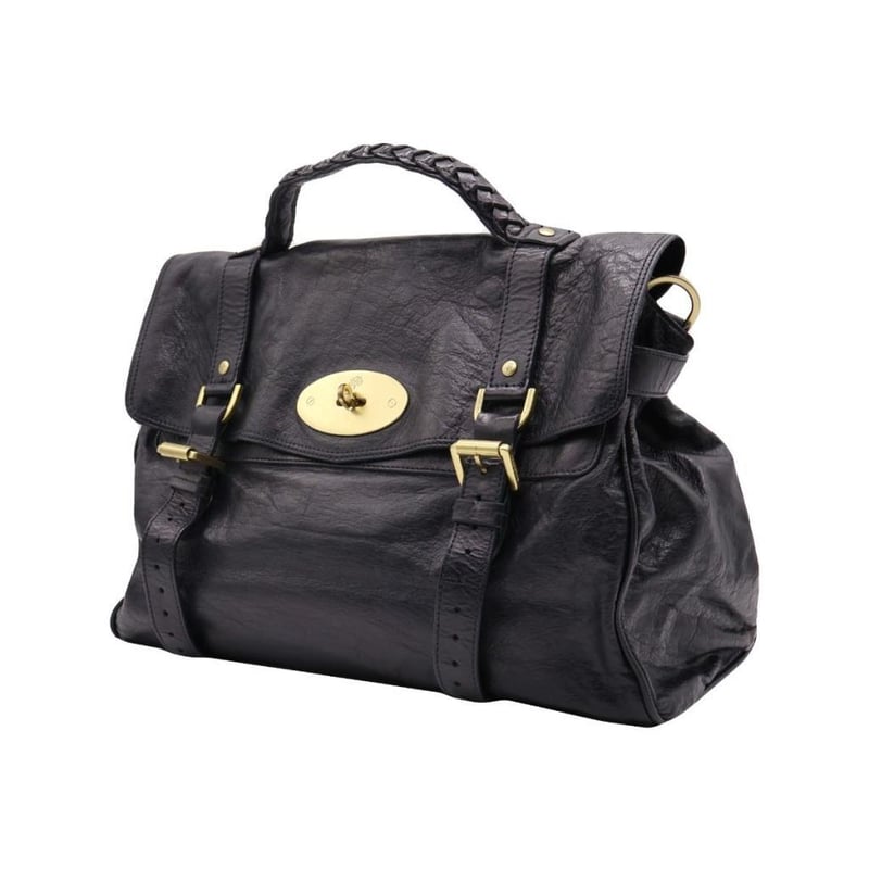 MULBERRY BLACK LEATHER OVERSIZED ALEXA TOP HANDLE SHOULDER BAG