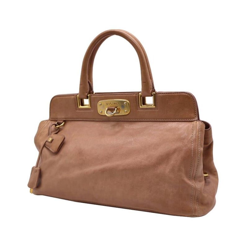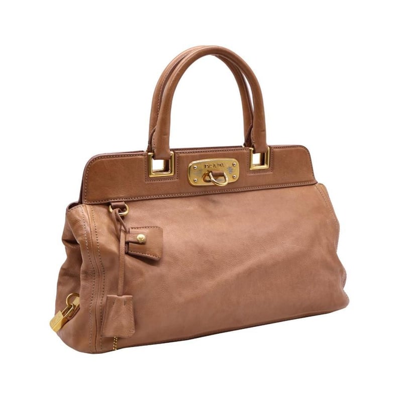 PRADA GLACE CALF FRAME SATCHEL CAMMEO