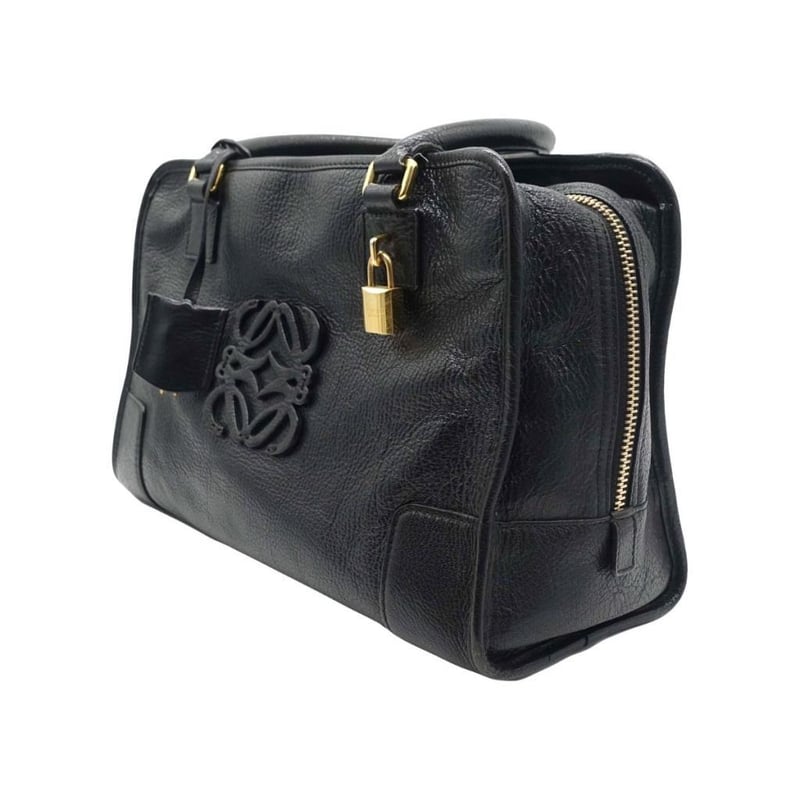 LOEWE AMAZONA 36 BLACK LEATHER BAG Exterior Material: Leather With Gold-Tone Hardware, Dual Rolled Top Handles, A Front And A Rear Patch Pocket, Zip Around Closure And Protective Metal Feet.Interior Material: Textile Lining With A Main Compartment.Length: 36CmHeight: 22.5CmDepth: 16CmHandle Drop: 18CmAdditional Condition Report- Moderate Sign Of Wear And Tears On Exterior- Moderate Scuffs And Creases On Exterior Corners- Minor Wear In Interior- Sign Of Wear And Scratches On HardwareComes With- Lock & KeysAccompanied By Certificate Of Authenticity Condition: Good - Refer Images 0163034+62