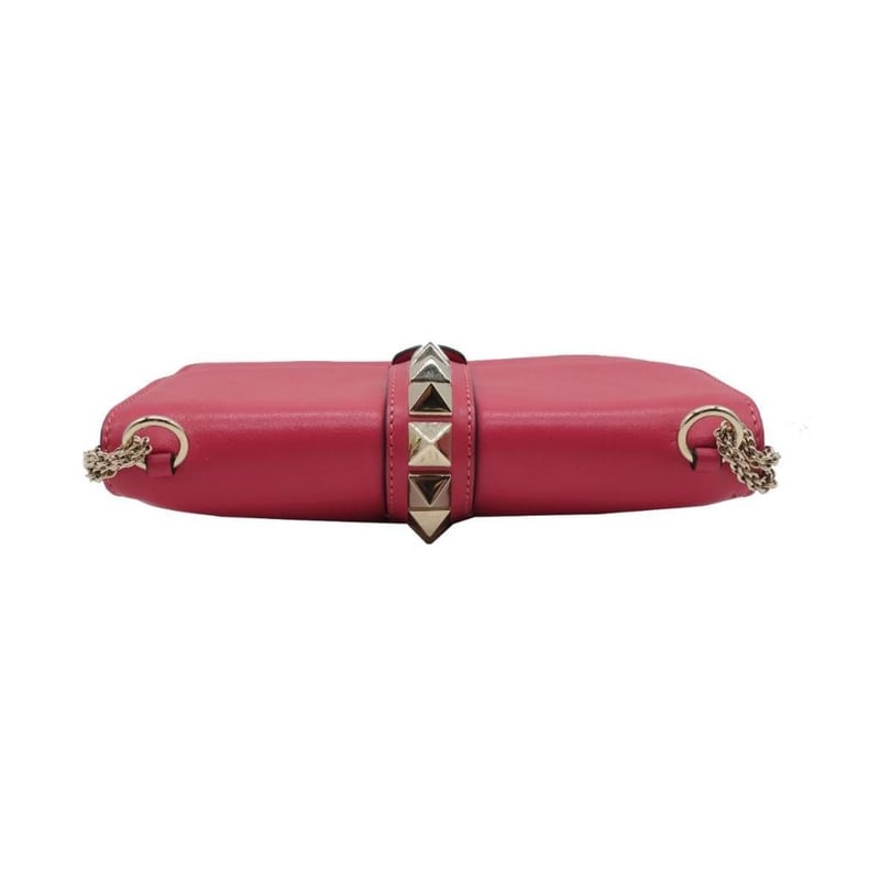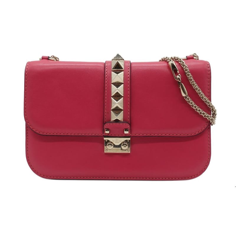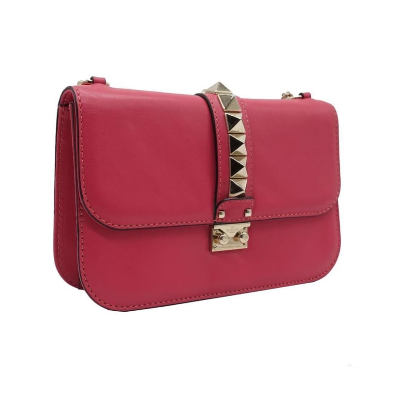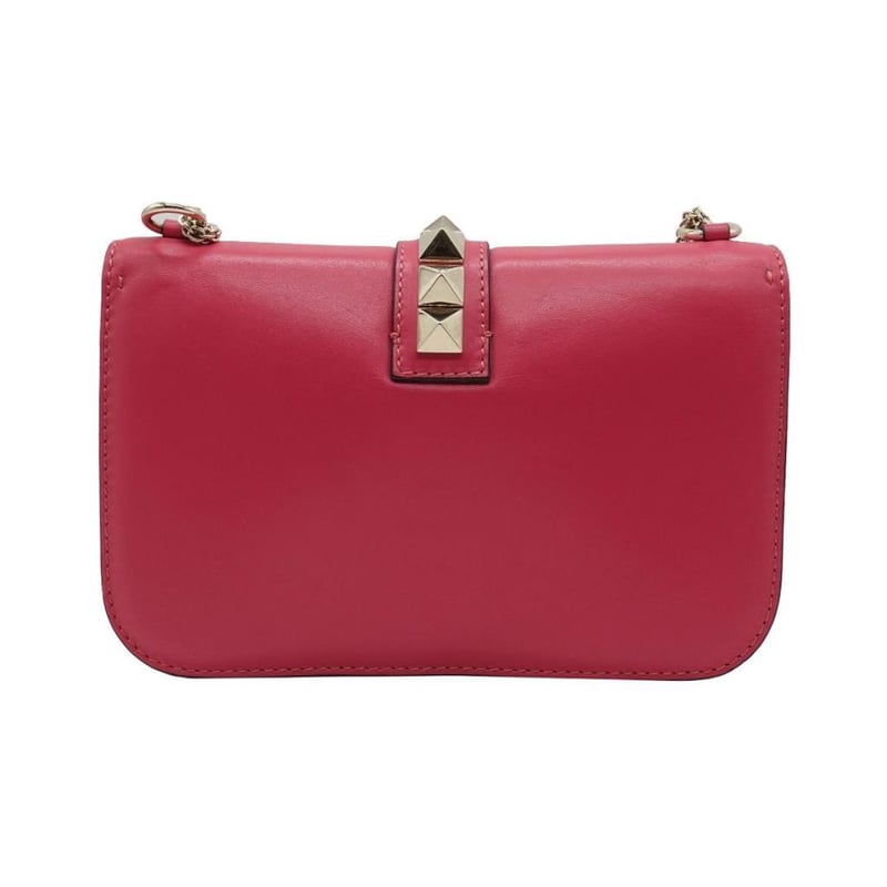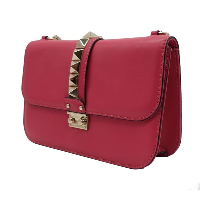 VALENTINO PINK LEATHER ROCKSTUD GLAM LOCK MEDIUM FLAP BAG Exterior Material: Leather With Gold-Tone Hardware, Push Lock Flap Closure And A Chain-Link Shoulder Strap.Interior Material: Textile Lining With A Main Compartment, A Zipped Pocket And Two Patch Pockets.Length: 27CmHeight: 17.5CmDepth: 7CmStrap Drop: 50Cm DetachableAdditional Condition Report- Minor Sign Of Wear And Tears On Exterior- Moderate Wear And Stains In Interior- Sign Of Wear And Scratches On HardwareComes With- A Detachable StrapAccompanied By Certificate Of Authenticity Condition: Good - Refer Images 0163034+49