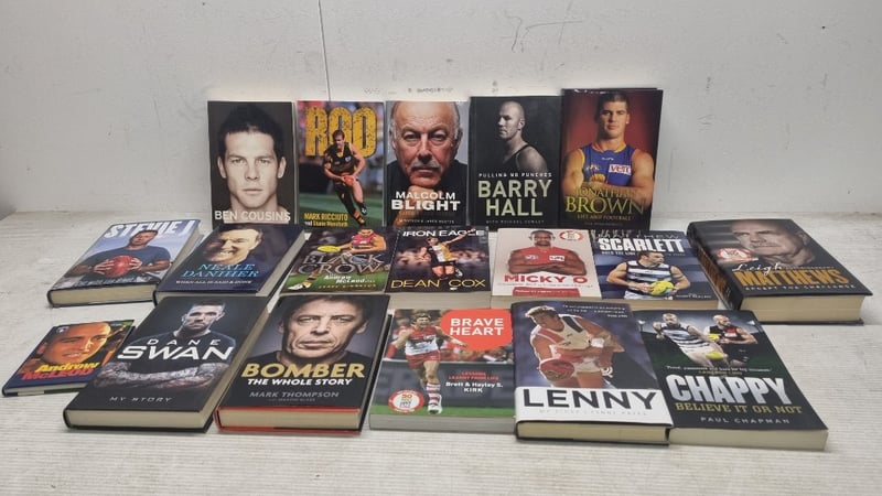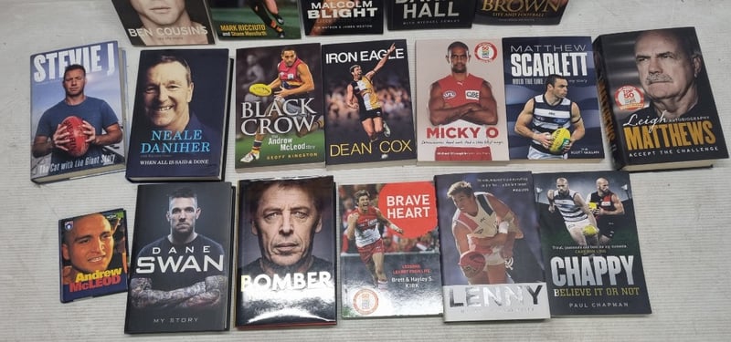 Books, assortment of AFL autobiographies, including Ben Cousins: my life story, Malcolm Blight and Dane Swan.