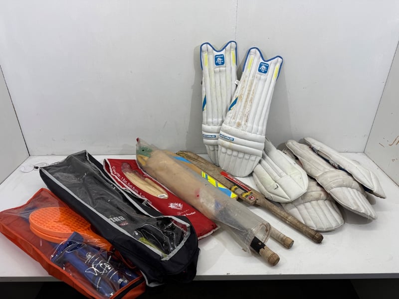 Cricket Accessories, Assorted Brands including Spartan, Taylor, Gray-Nicholls etc. Assorted Cricket Bats, Knee pads, Stumps etc.