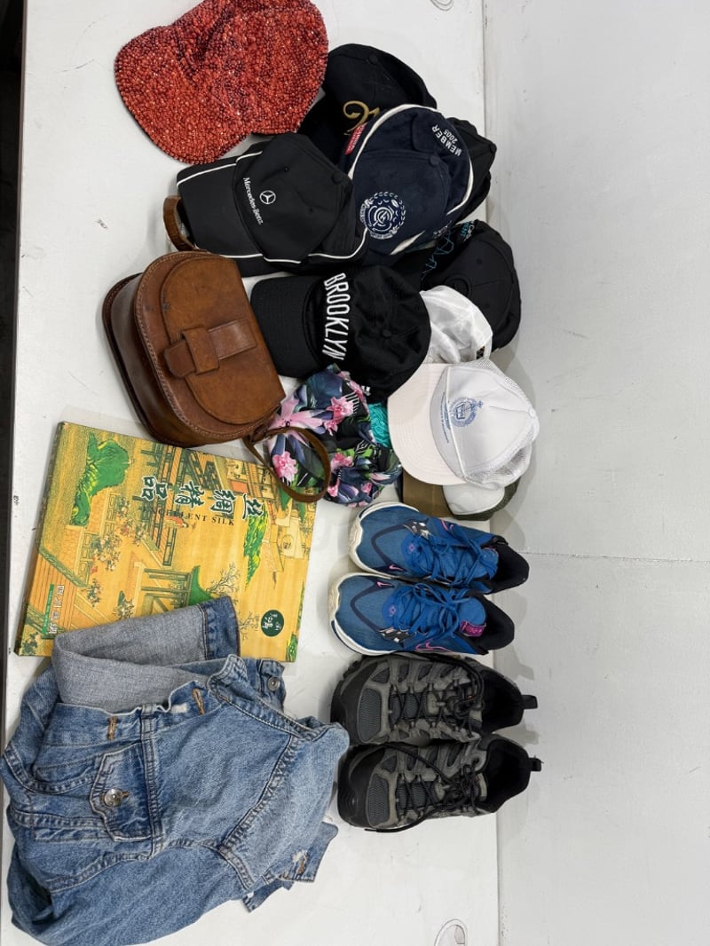 Assorted Hats and Clothing, Assorted Brands, Assorted items including Hats, Jacket, Shoes etc.