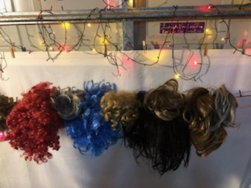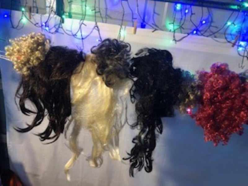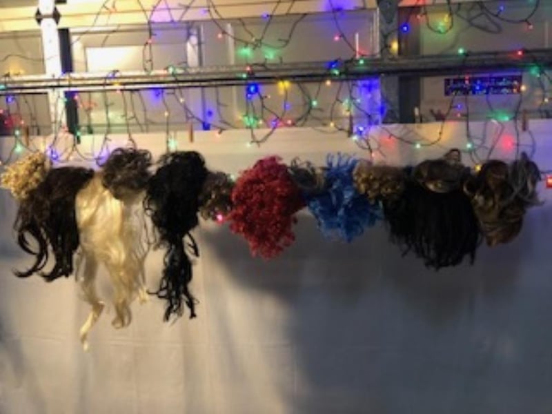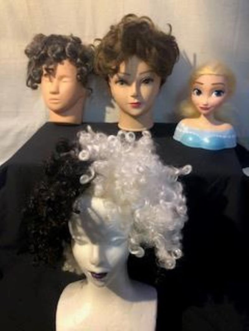 Assorted Wigs, approximately 25, with mannequins heads