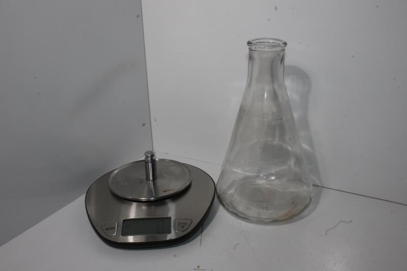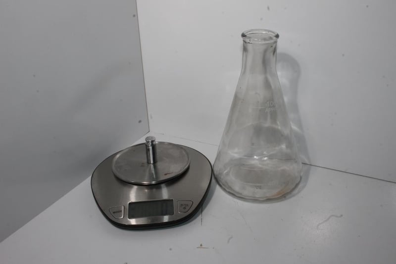 Lab Equipment Lot – Digital Scale & Glass Flask