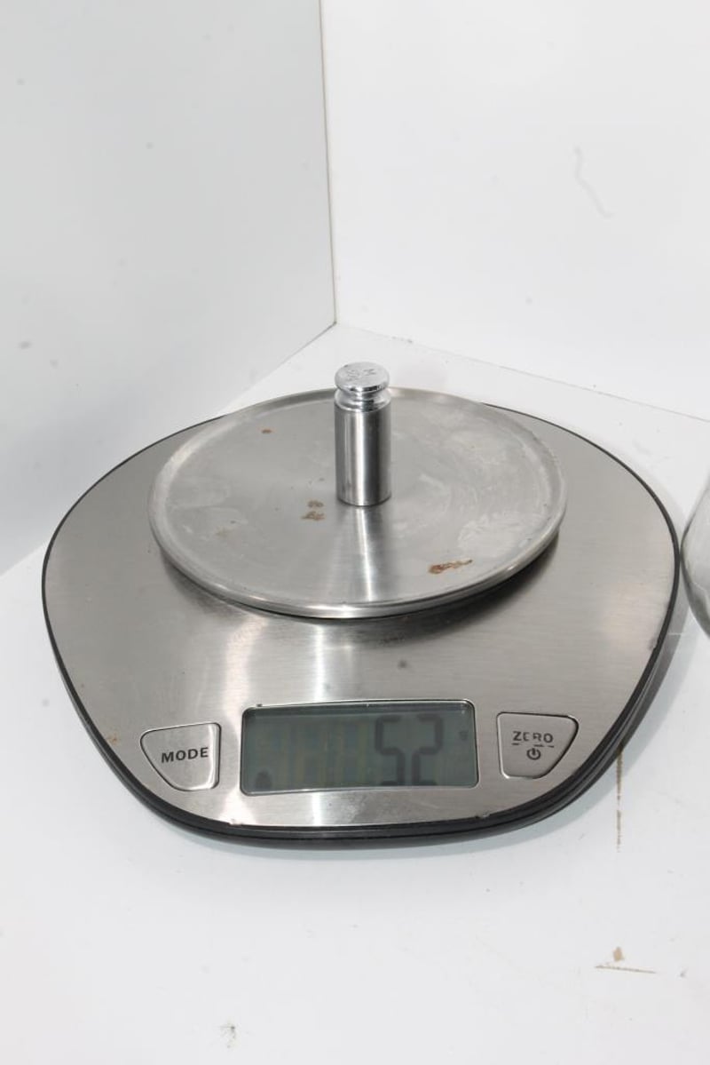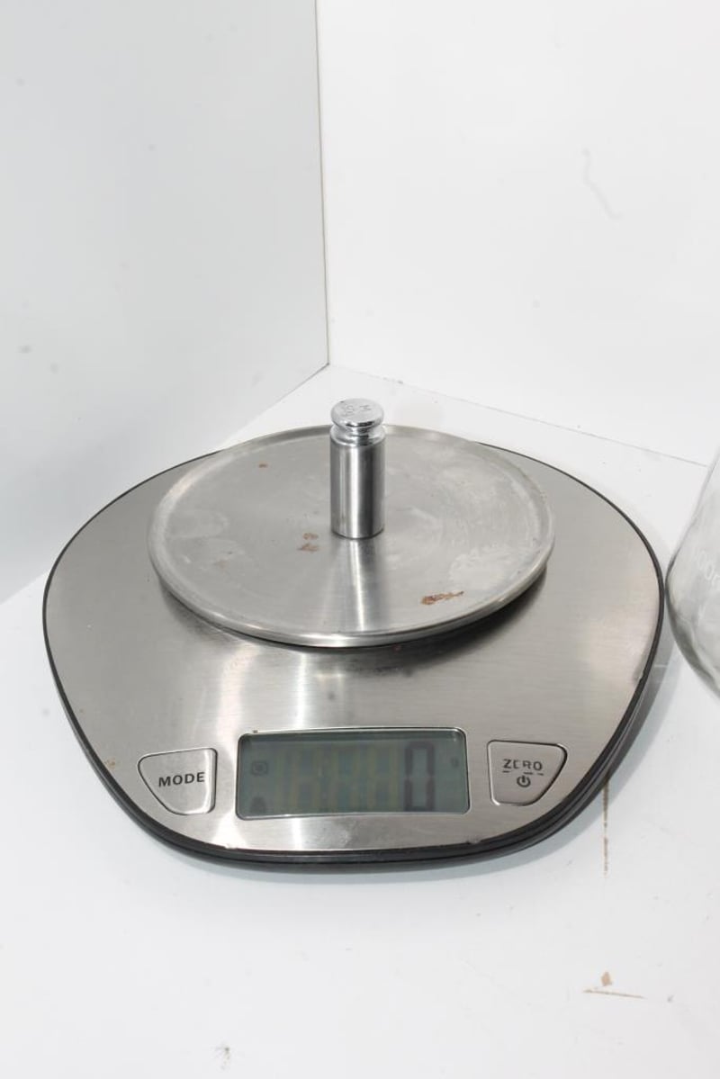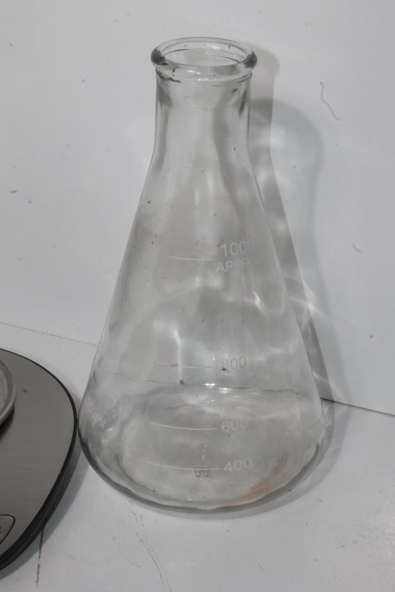 All untested and in varying condition – includes digital kitchen/lab scale with weight & glass Erlenmeyer flask as pictured.
