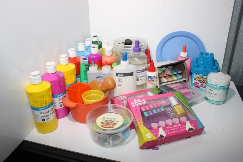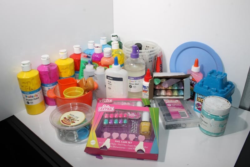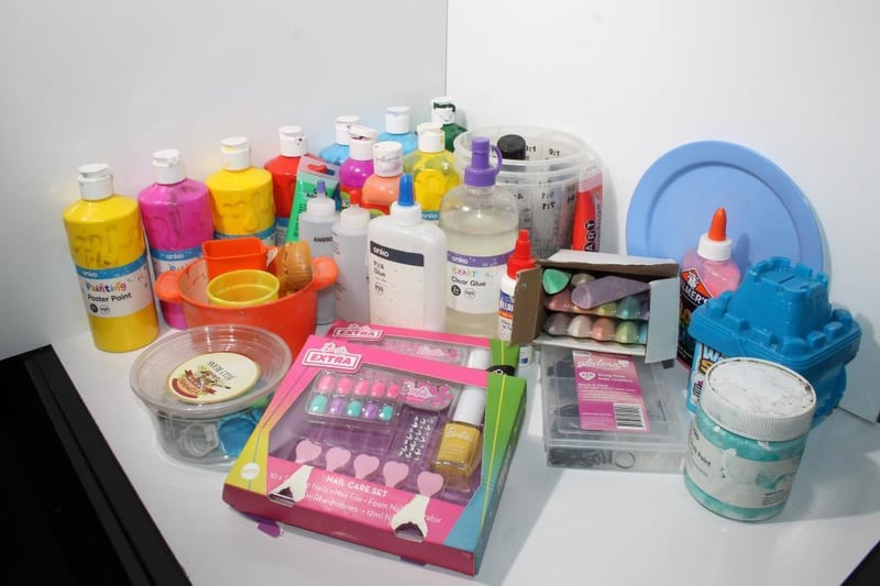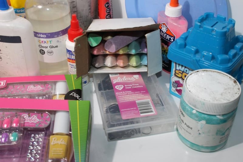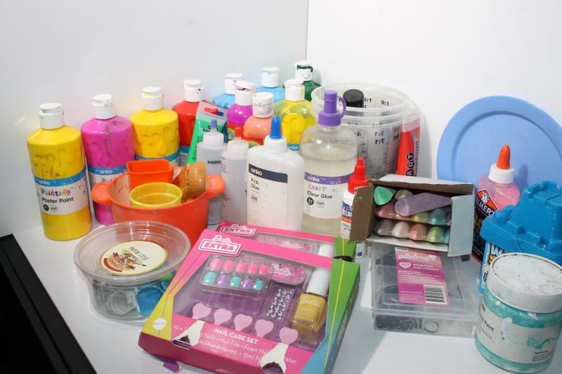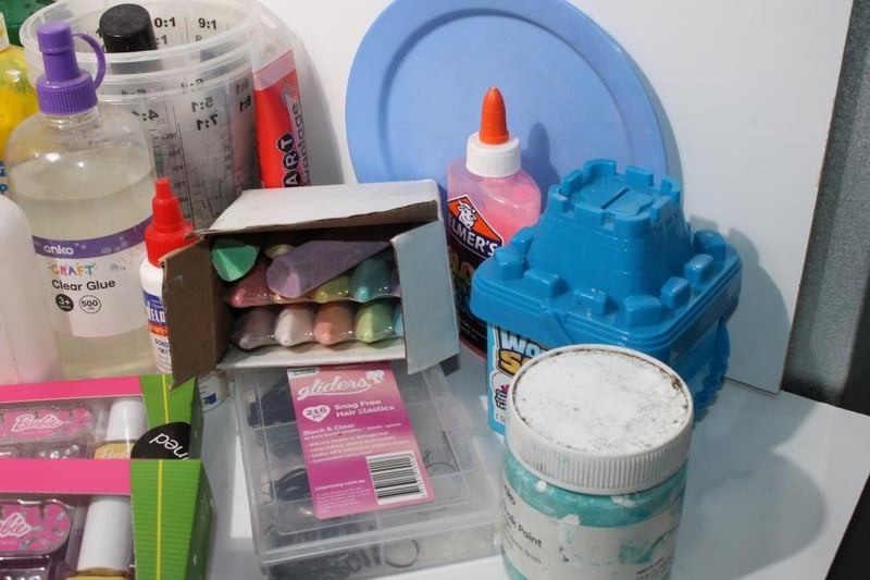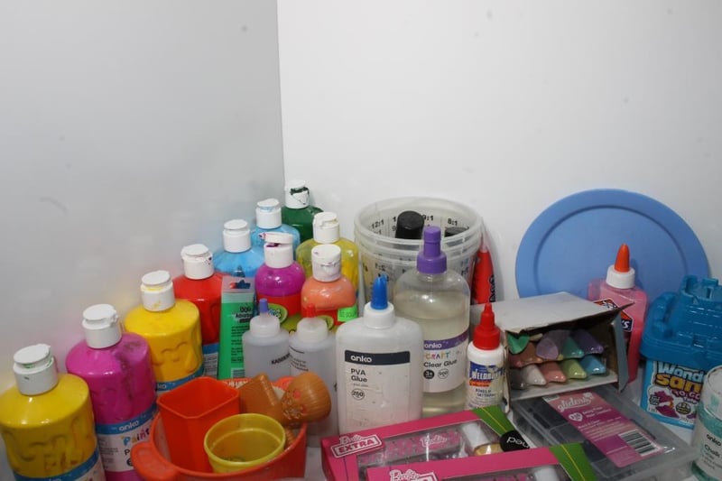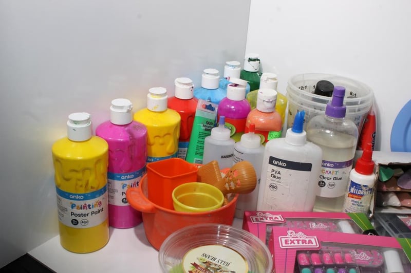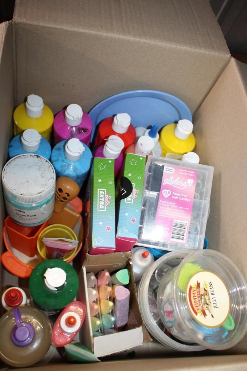 Kids’ Craft & Activity Supplies Lot – Paints, Glues, ChalkLarge assorted bundle of paints, glues, chalks, cups and containers, with visible brands including ANKO, Elmer’s. Items are in mixed used and unchecked condition and offered as a single combined lot.