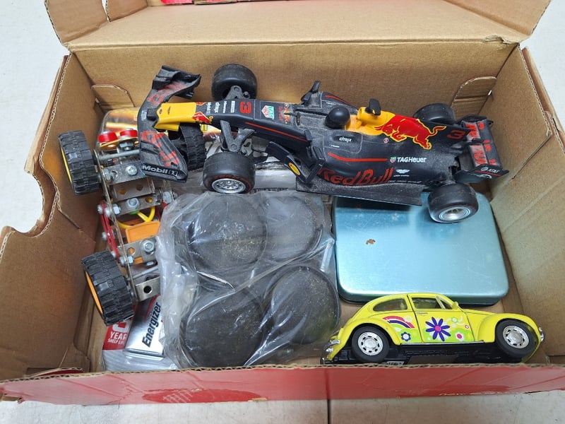 Assorted Box LotIncludes Toy Cars, Energizer Batteries & More