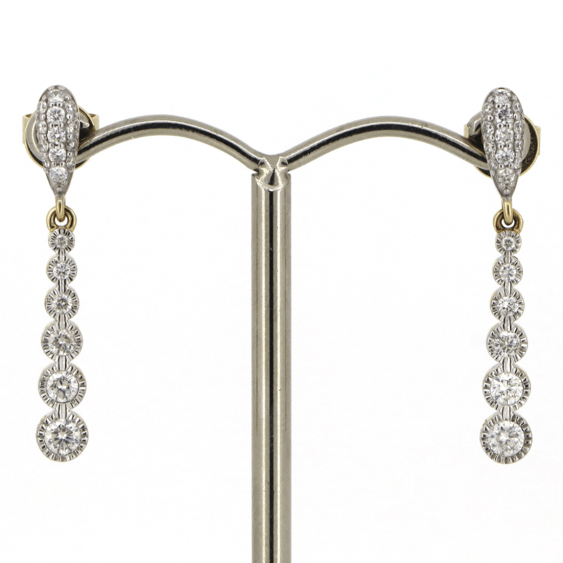 The Designs Feature, 38 Round Brilliant Cut, Diamonds (0.63Ct Tdw, G-J Colour, Si-I2 Clarity), Bezel/Bead Set. The Design Is A Graduated, Drop Style. The Earrings Feature 14K Yellow Gold Disc Butterfly Clasps.