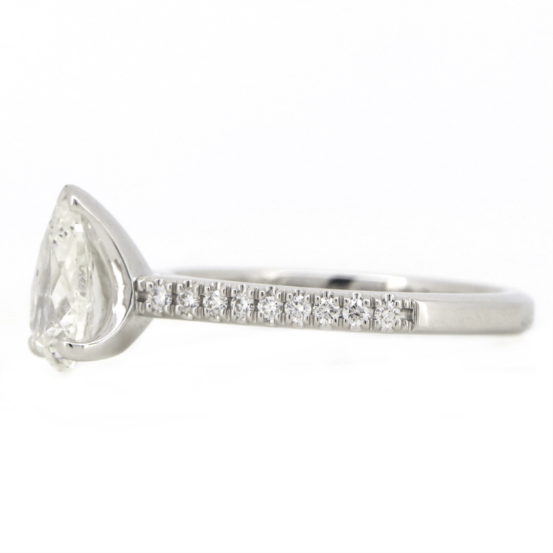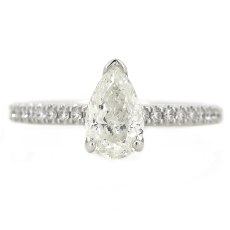 18K WHITE GOLD AND DIAMOND, CLASSIC RING. The Centre Features, One Pear Brilliant Cut, Diamond (1.22Ct, H-I Colour, I1-2 Clarity), V Prong Set. Decorating The Band Are, 18 Round Brilliant Cut, Diamonds (0.18Ct Tdw, G Colour, Si1 Clarity), Bead Set. Ring Size N. Valuations Provided by an Independent Third-Party Professional Not Directly Associated With Lloyds Auctions at AUD $$22,300.00This valuation has been conducted by an independent third-party professional. The valuation amount is an assessment by the issuing valuer and does not reflect the auction value of the item. Any inquiries regarding the valuation should be directed to the issuing valuer (refer to contact details on the certificate), as Lloyds Auctions has no affiliation or influence over the valuation, the valuer, or the stated amount. Condition: Good - Refer Images 0646929+339