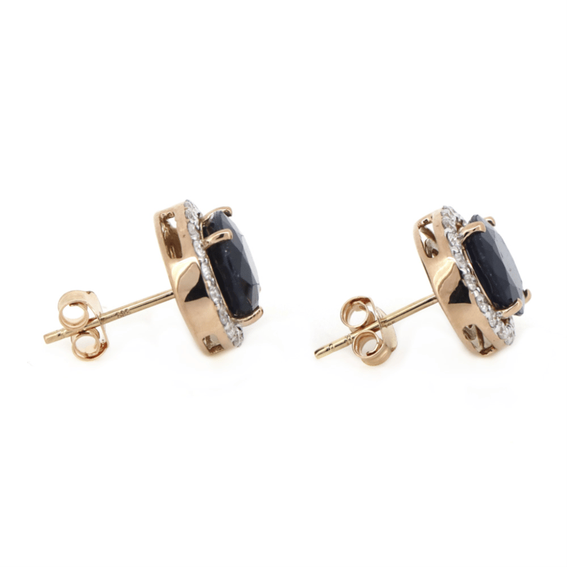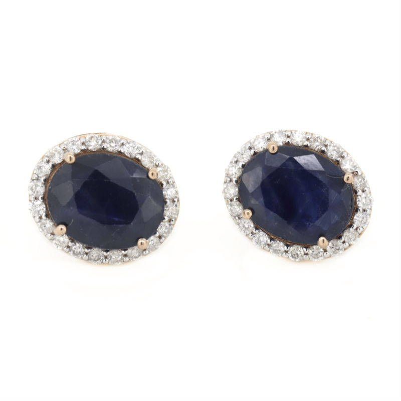 14K ROSE GOLD, BLUE SAPPHIRE AND DIAMOND, HALO STUD EARRINGS. The Centres Feature, 2 Oval Cut, Dark Blue, Sapphires (6.82Ct Tsw, Heavily Included), 4 Claw Set. Surrounding The Centres In Halos Are, 40 Round Brilliant Cut, Diamonds (0.56Ct Tdw, H-K Colour, Si-I3 Clarity), Bead Set. The Earrings Have Standard 14K Rose Gold Posts And Butterfly Clasps. Valuations Provided by an Independent Third-Party Professional Not Directly Associated With Lloyds Auctions at AUD $$12,000.00This valuation has been conducted by an independent third-party professional. The valuation amount is an assessment by the issuing valuer and does not reflect the auction value of the item. Any inquiries regarding the valuation should be directed to the issuing valuer (refer to contact details on the certificate), as Lloyds Auctions has no affiliation or influence over the valuation, the valuer, or the stated amount. Condition: Good - Refer Images 0646929+343