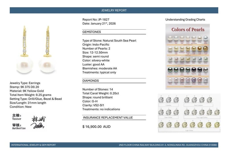 Featuring, 2 Silvery-White South Sea Pearls (12-12.50Mm Size, Aa Grade), With 14 Round Brilliant Cut Diamonds (0.20Ct Tdw, G-H Colour, Vs2-Si1 Clarity), Bezel/Bead Set.