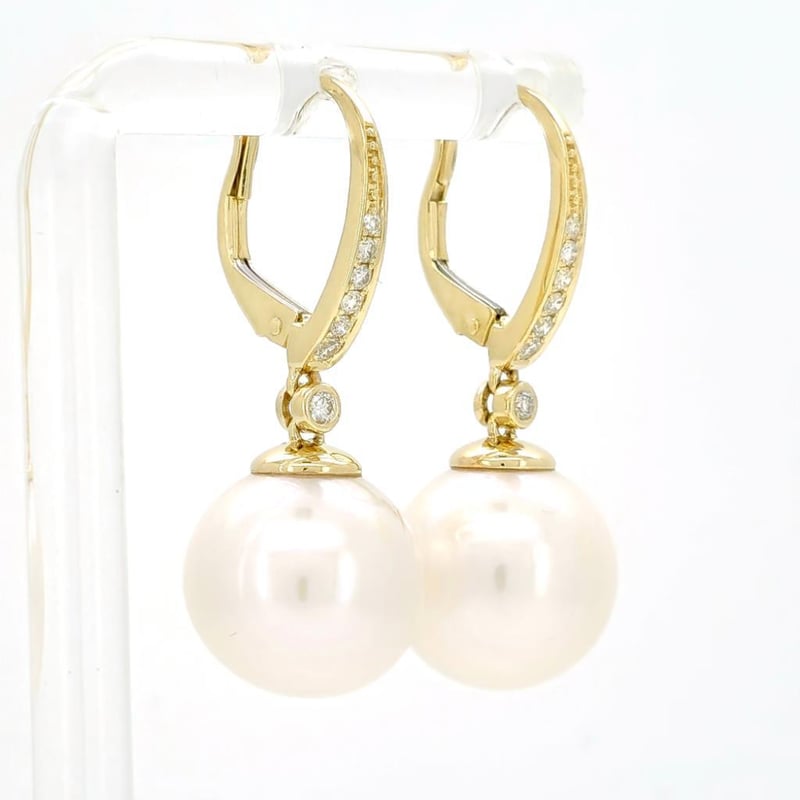 9CT YELLOW GOLD SOUTH SEA PEARL AND DIAMOND DROP EARRINGS