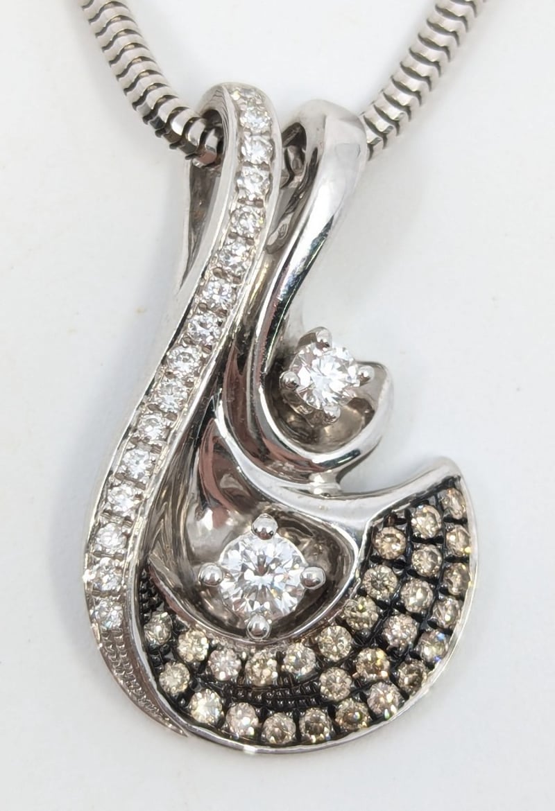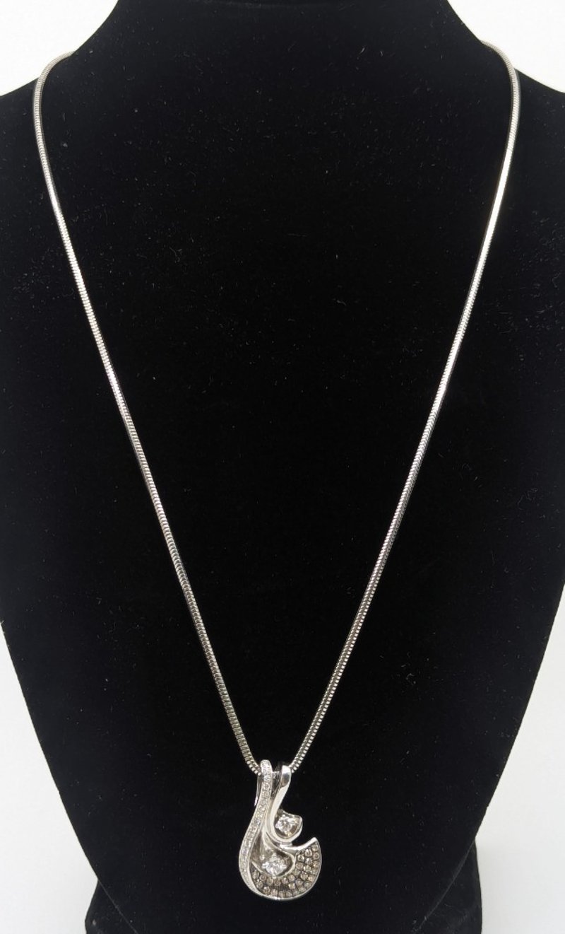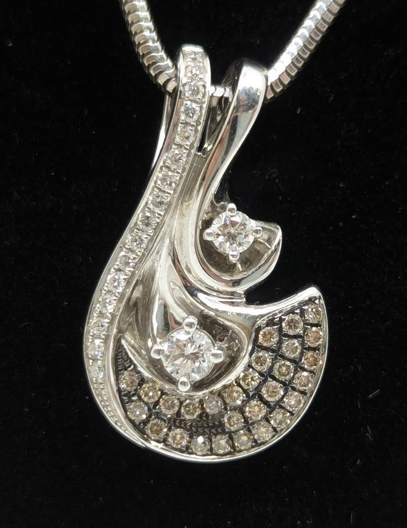 14K White Gold Diamond Pendant On 50Cm 14K White Gold Chain, Pendant Features Forty-Six Round Brilliant Cut Diamonds, Total Estimated Diamond Weight: 0.617Ct, Colour: F/G, Clarity: Si,