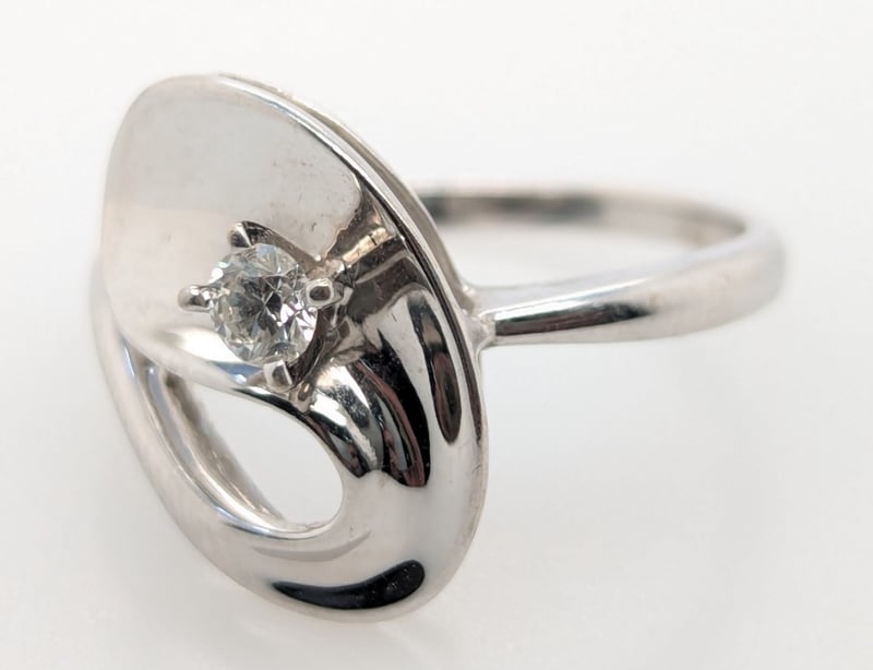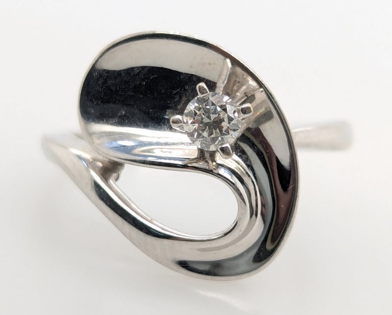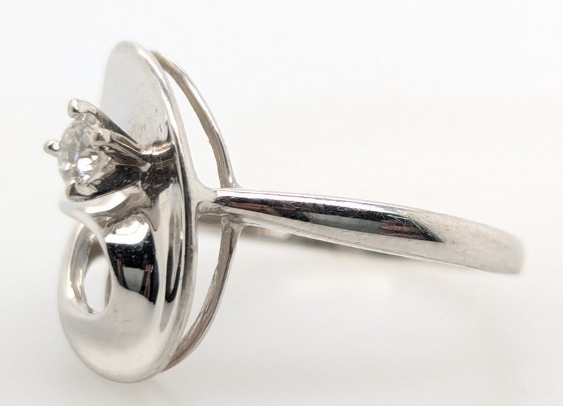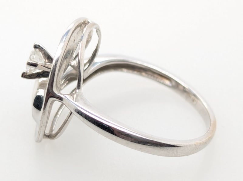 14K White Gold Diamond Ring: 0.131Ct Round Brilliant Cut Diamond In Centre Four Claw Setting, Colour: F/G, Si Clarity,