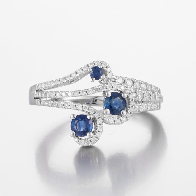 Featuring Centre, 3 Round Cut, Moderate Royal Blue Australian Sapphires (0.52Ct, Moderately Included), Claw Set, With 77 Round Brilliant Cut Diamonds (0.35Ct Tdw, G-H Colour, Vs1-Vs2 Clarity), Bead Set. Ring Size O.