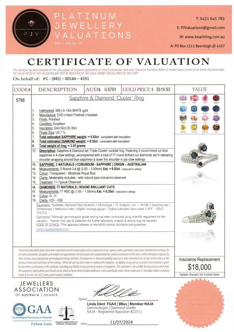 14CT WHITE GOLD AUSTRALIAN SAPPHIRE AND DIAMOND DRESS RING