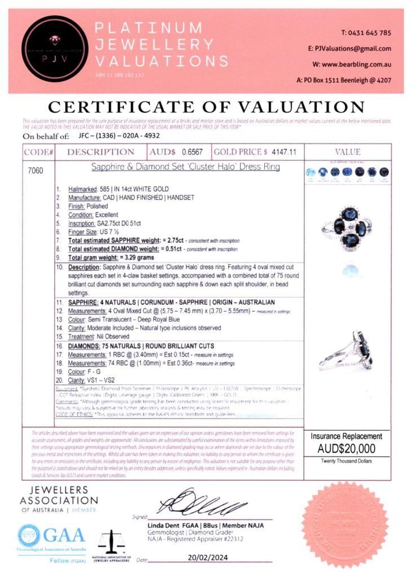 14CT WHITE GOLD AUSTRALIAN SAPPHIRE AND DIAMOND CLUSTER RING