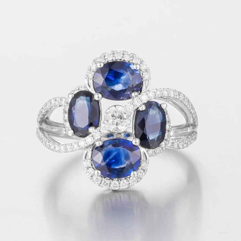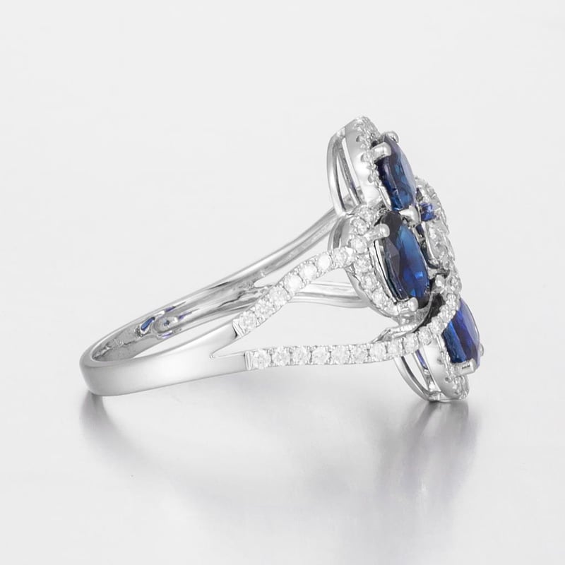 Featuring Centre, 4 Oval Cut, Deep Royal Blue Australian Sapphires (2.75Ct Tsw, Moderately Included), Claw Set, With 75 Round Brilliant Cut Diamonds (0.51Ct Tdw, F-G Colour, Vs1-Vs2 Clarity), Bead Set. Ring Size O.
