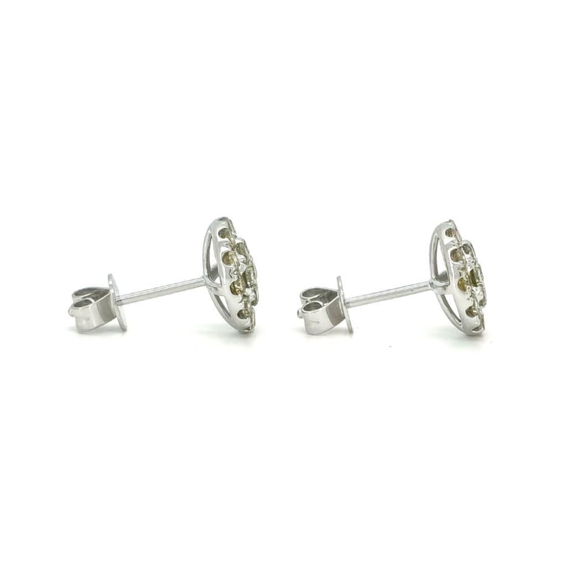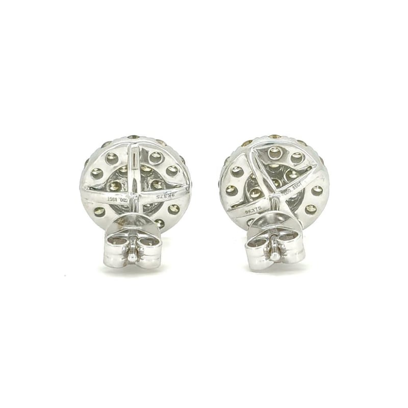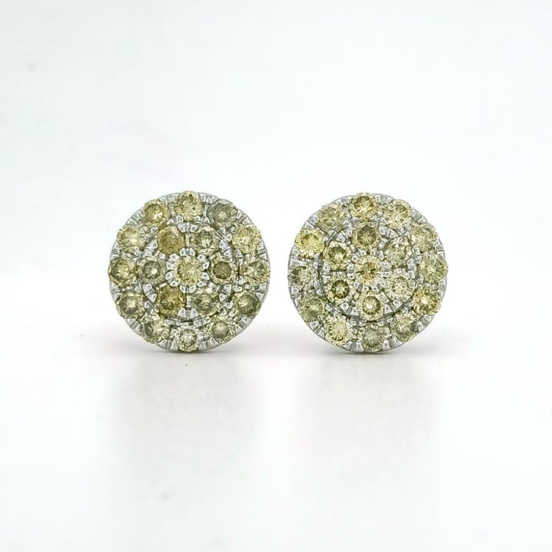 9CT WHITE GOLD FANCY YELLOW AND CHAMPAGNE BROWN DIAMOND HALO STUD EARRINGS