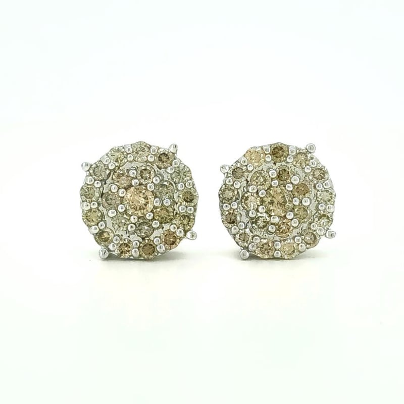 9CT WHITE GOLD FANCY CHAMPAGNE BROWN DIAMOND HALO STUD EARRINGS