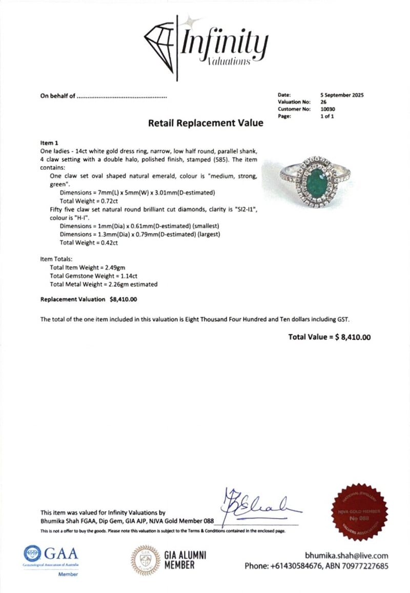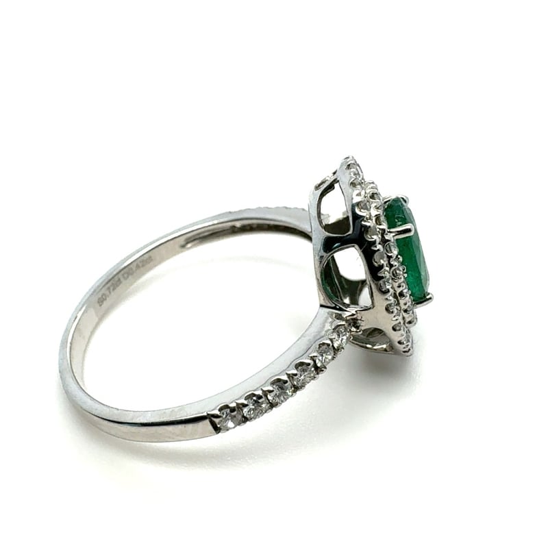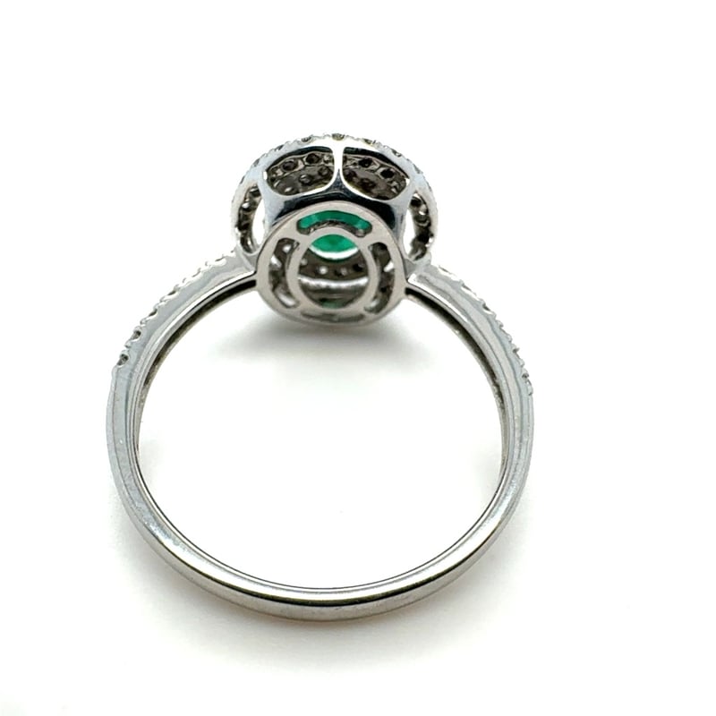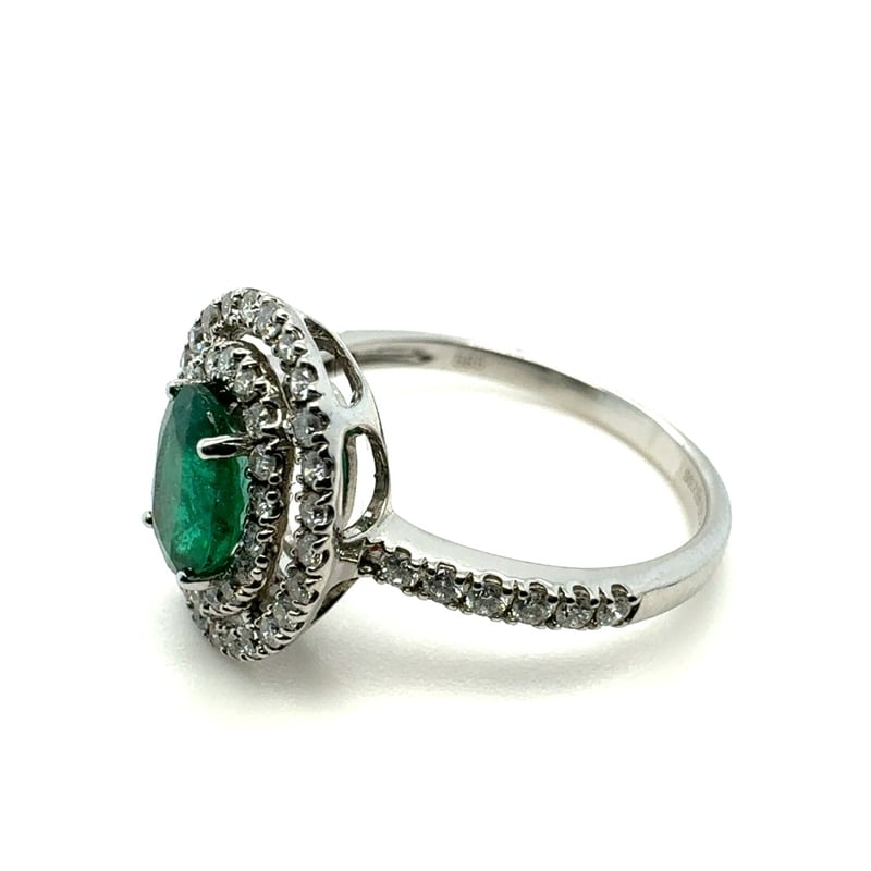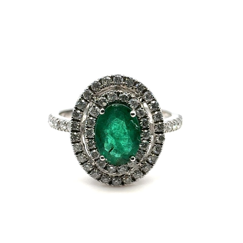 14CT WHITE GOLD OVAL CUT EMERALD AND DIAMOND HALO RING