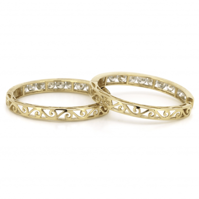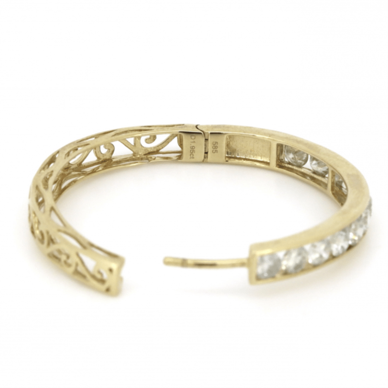 14K YELLOW GOLD, 1.95CT TDW DIAMOND, FILIGREE HOOP EARRINGS. The Hoops Feature, 24 Round Brilliant Cut, Diamonds (1.95Ct Tdw, I-K Colour, P2+ Clarity), Channel Set. The Earrings Have Hinged Snap Closures. Valuations Provided by an Independent Third-Party Professional Not Directly Associated With Lloyds Auctions at AUD $$10,600.00This valuation has been conducted by an independent third-party professional. The valuation amount is an assessment by the issuing valuer and does not reflect the auction value of the item. Any inquiries regarding the valuation should be directed to the issuing valuer (refer to contact details on the certificate), as Lloyds Auctions has no affiliation or influence over the valuation, the valuer, or the stated amount. Condition: Good - Refer Images 0645921+112