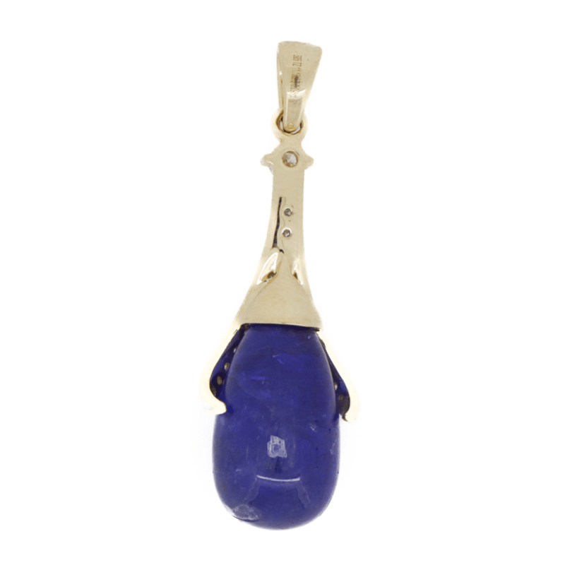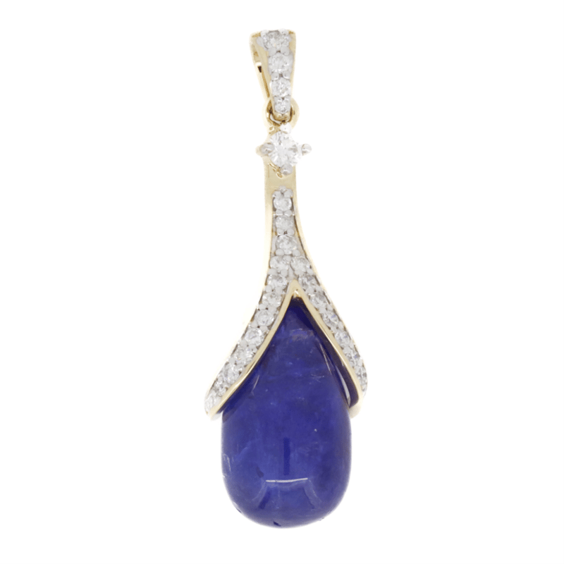 14K YELLOW GOLD, 11.15CT TANZANITE AND DIAMOND, DROP PENDANT.