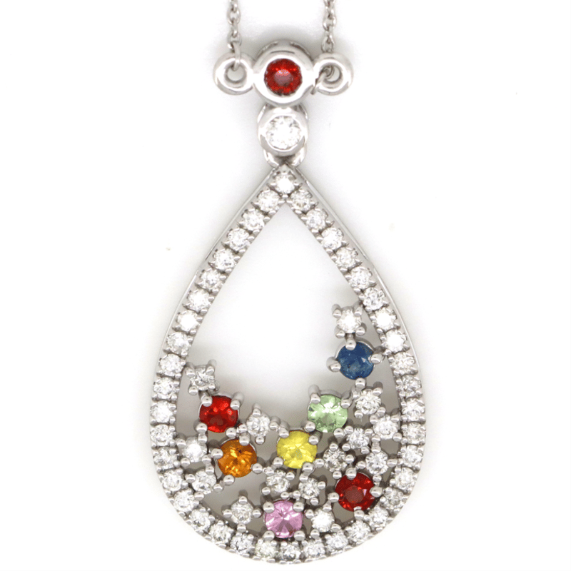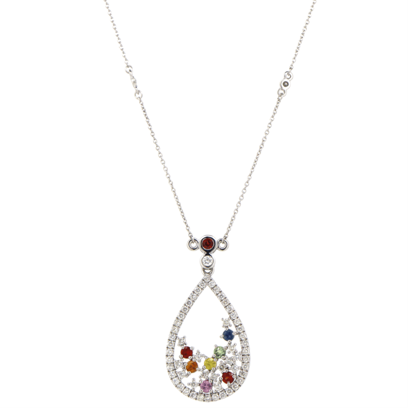 14K WHITE GOLD, MULTI-COLOURED SAPPHIRE AND DIAMOND, NECKLACE. The Centre Features, 8 Round Brilliant Cut, Red, Orange, Pink, Yellow, Green And Blue, Sapphires (0.49Ct Tsw, Slightly/Heavily Included), Pip-Claw/Bezel Set. Encompassing The Centre Are, 61 Round Brilliant Cut, Diamonds (0.70Ct Tdw, G-H Colour, Si1-Si2), Bead Set. The Necklace Is 22Cm And Features A Lobster Clasp. Valuations Provided by an Independent Third-Party Professional Not Directly Associated With Lloyds Auctions at AUD $$15,000.00This valuation has been conducted by an independent third-party professional. The valuation amount is an assessment by the issuing valuer and does not reflect the auction value of the item. Any inquiries regarding the valuation should be directed to the issuing valuer (refer to contact details on the certificate), as Lloyds Auctions has no affiliation or influence over the valuation, the valuer, or the stated amount. Condition: Good - Refer Images 0645921+127