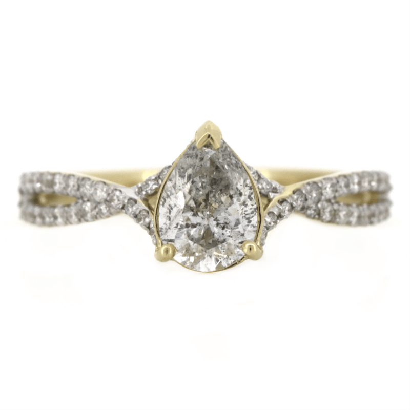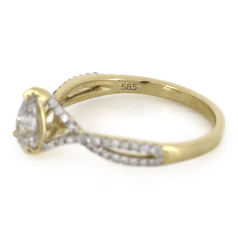The Centre Features, One Pear Brilliant Cut, Diamond (0.74Ct, H-I Colour, I1 Clarity), 3 Claw Set. Decorating The Band And Rail Are, 50 Round Brilliant Cut, Diamonds (0.237Ct Tdw, G-K Colour, Si-I2+ Clarity), Bead Set. Ring Size M.