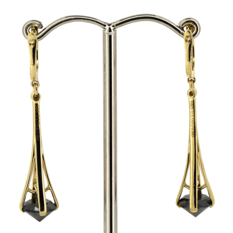 14K YELLOW GOLD, BLACK DIAMOND AND DIAMOND, DROP EARRINGS. The Centres Feature, 2 Round Brilliant Cut, Black, Diamonds (3.77Ct Tdw, Opaque), Claw Set. Decorating The Design And Hooks Are, 50 Round Brilliant Cut, Diamonds (0.39Ct Tdw, G-I Colour, Si-I2 Clarity), Bead Set. The Earrings Feature, Half Hooped Hinged Clips. Valuations Provided by an Independent Third-Party Professional Not Directly Associated With Lloyds Auctions at AUD $$18,000.00This valuation has been conducted by an independent third-party professional. The valuation amount is an assessment by the issuing valuer and does not reflect the auction value of the item. Any inquiries regarding the valuation should be directed to the issuing valuer (refer to contact details on the certificate), as Lloyds Auctions has no affiliation or influence over the valuation, the valuer, or the stated amount. Condition: Good - Refer Images 0645921+132