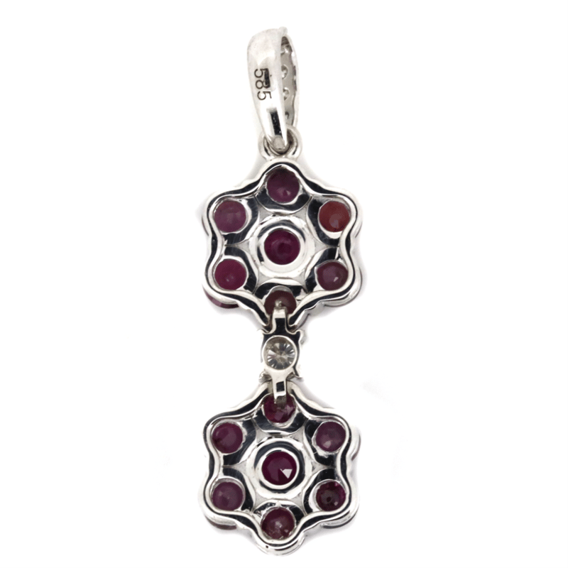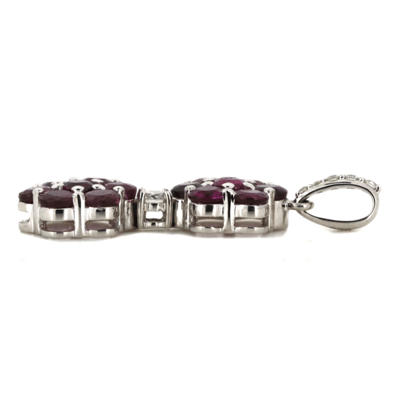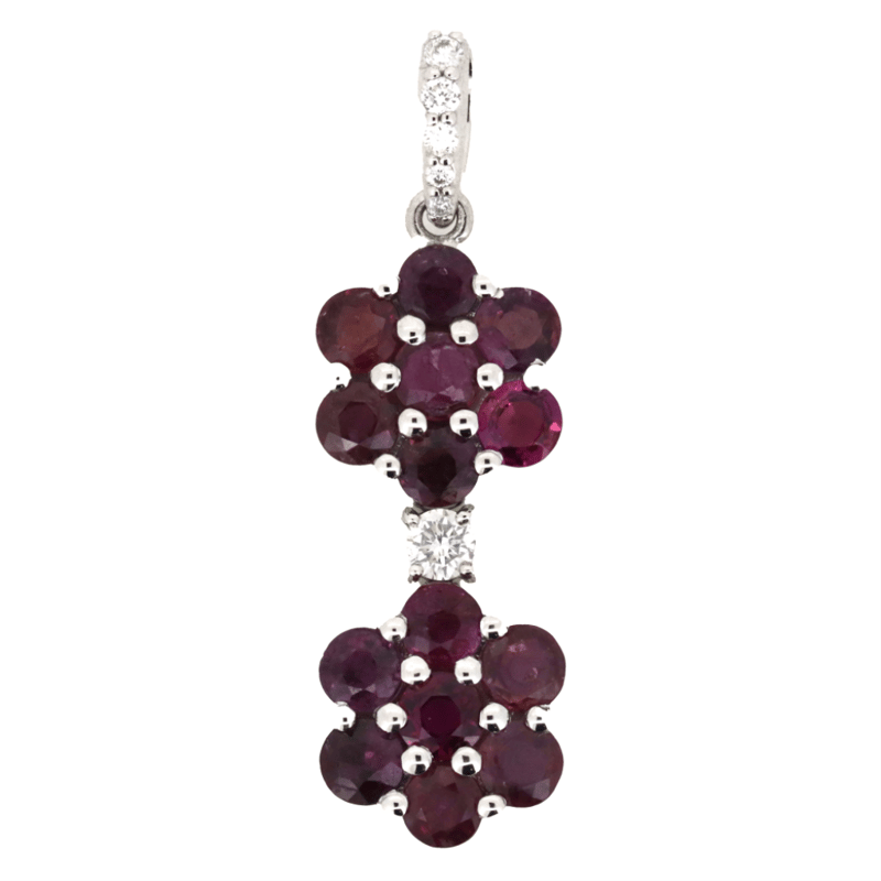 The Design Features, 14 Round Cut, Dark Purplish-Pink, Sapphires (2.48Ct Tsw, Moderate-Heavy Inclusions), Bead Set In Floral Designs. Embellishing The Design And Decorating The Bail Are, 6 Round Brilliant Cut, Diamonds (0.12Ct Tdw, H-I Colour, Si Clarity), Bead/Claw Set.