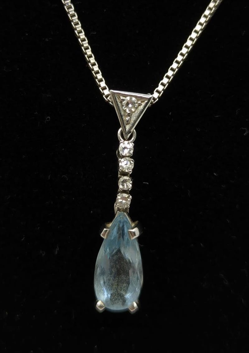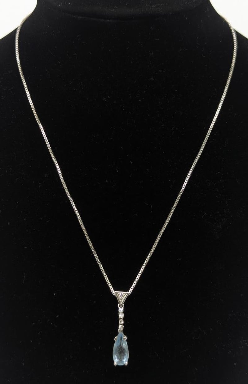 18K WHITE GOLD CHAIN WITH AQUAMARINE PENDANT