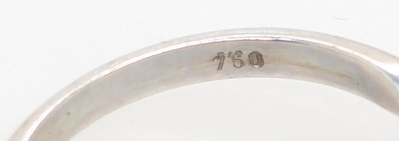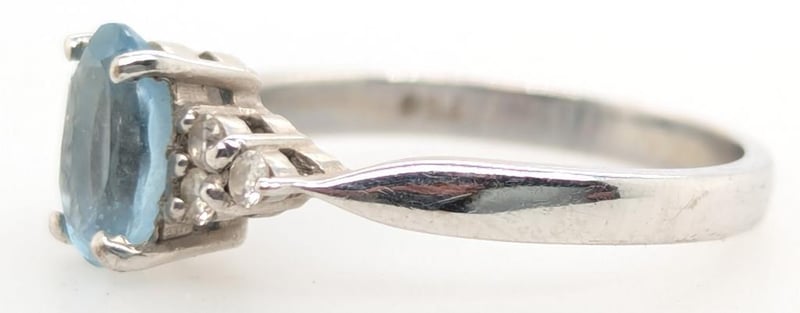 18K WHITE GOLD TOURMALINE RING Ring Features Oval Cut Tourmaline In Centre Four Claw Setting, Six Round Cut Sapphires In Three Claw Settings On Ring Shoulders Ring Stamped: 750 Condition: Good - Refer To Images VAULT 586349+3