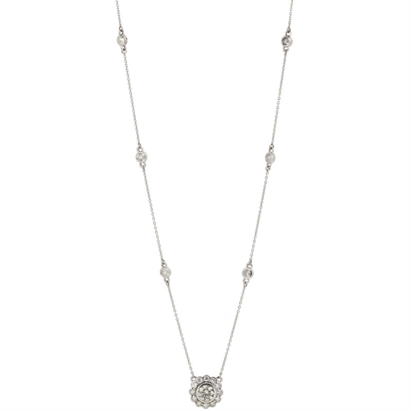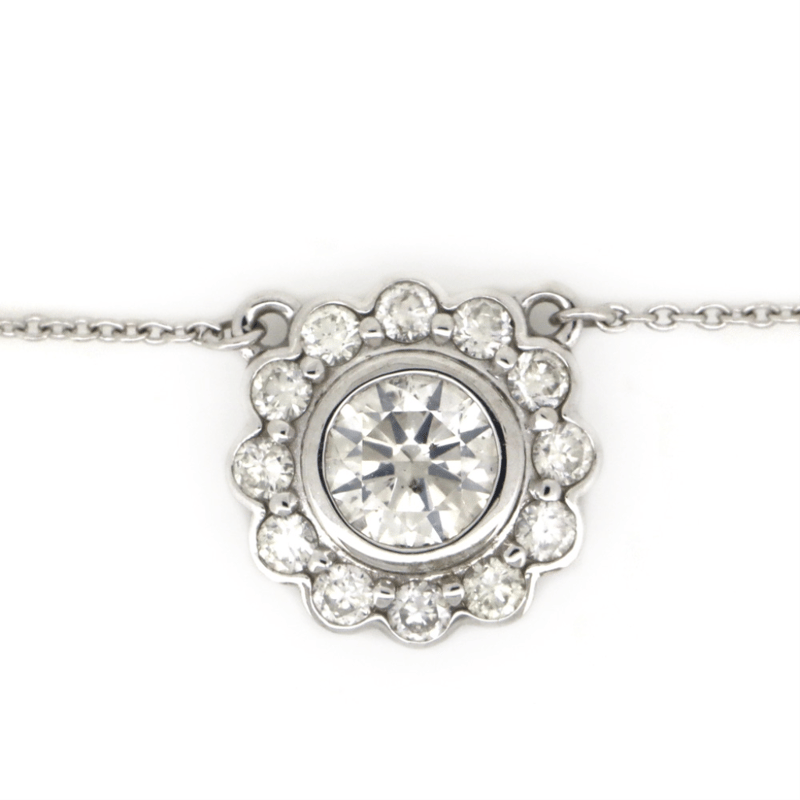 14K WHITE GOLD AND DIAMOND, HALO NECKLACE.