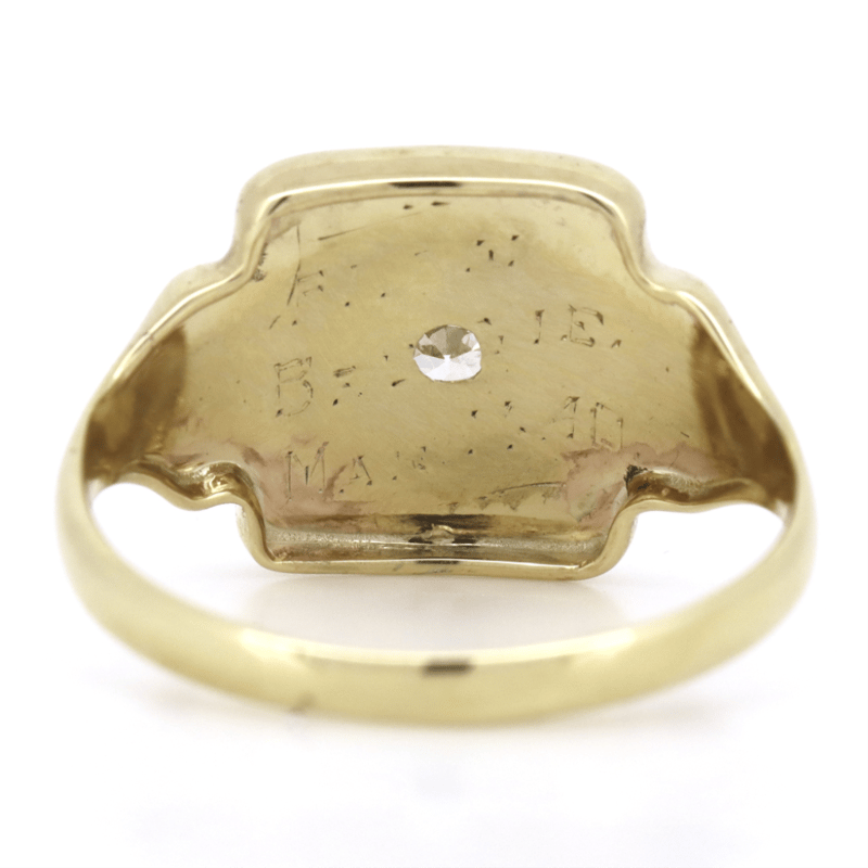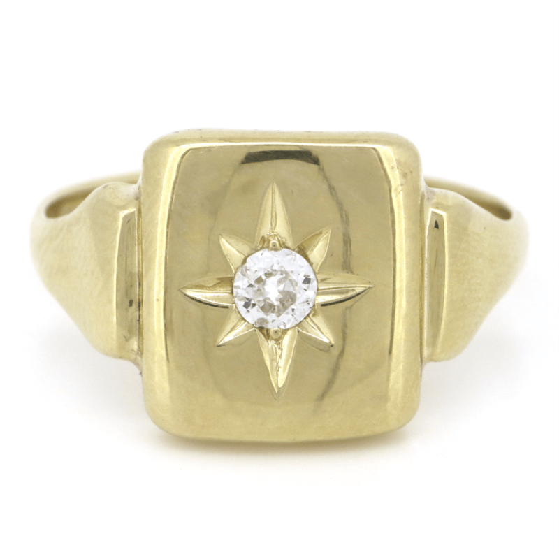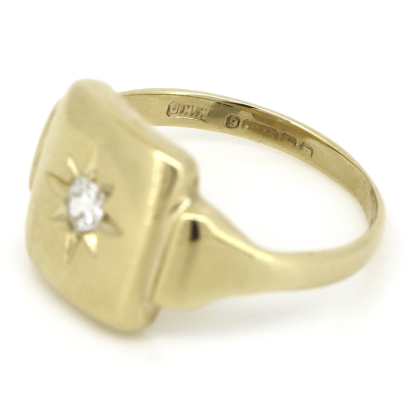 9K YELLOW GOLD AND DIAMOND, SIGNET RING.