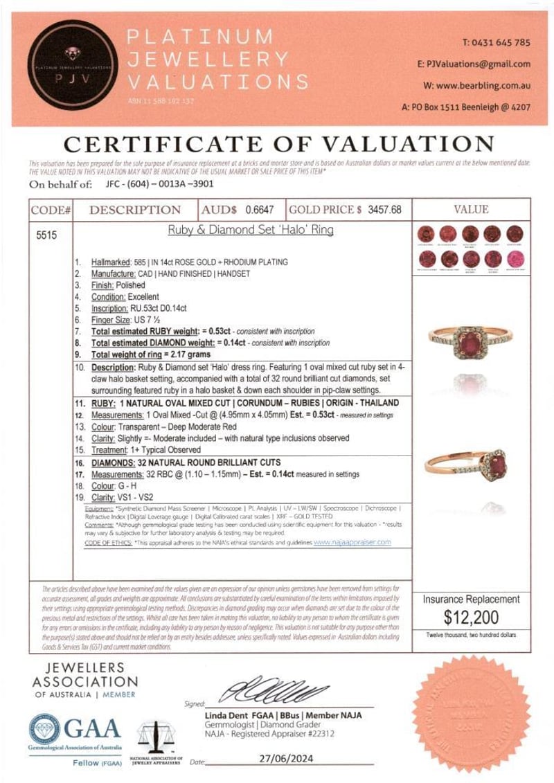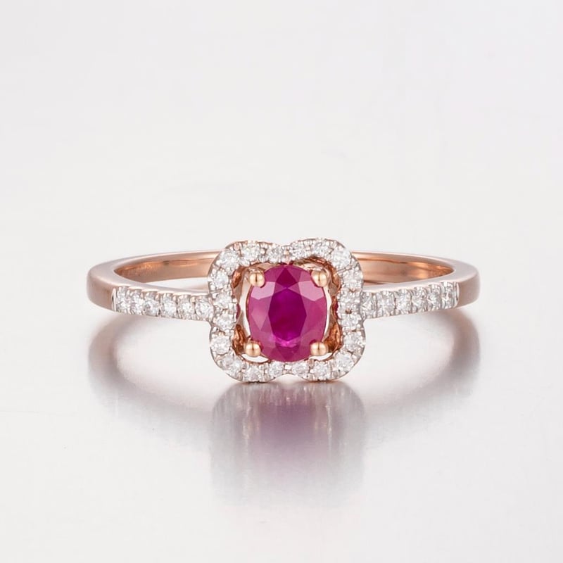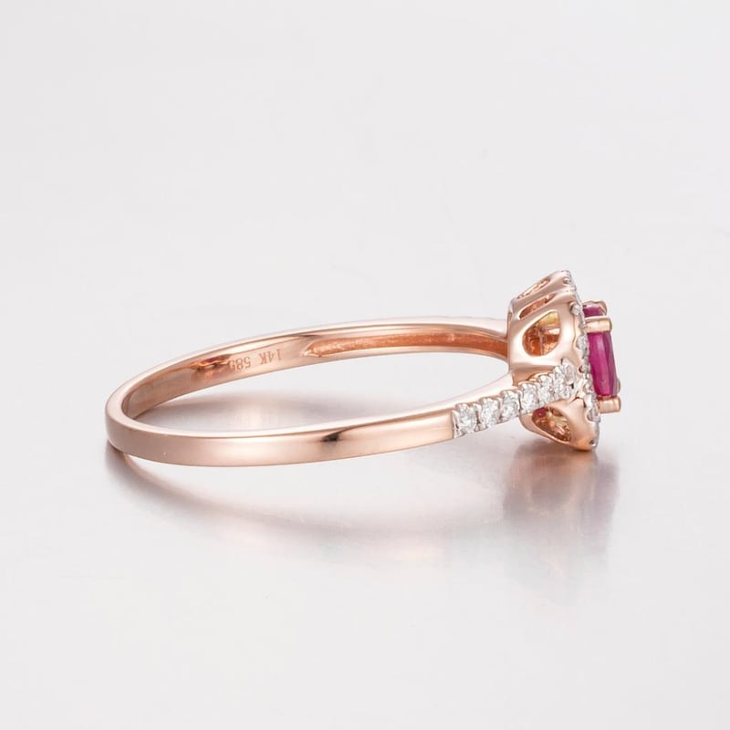 14CT ROSE GOLD RUBY AND DIAMOND HALO RING