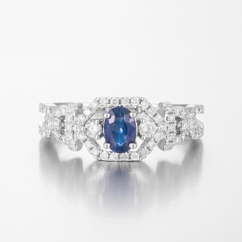 14CT WHITE GOLD CEYLON SAPPHIRE AND DIAMOND DRESS RING