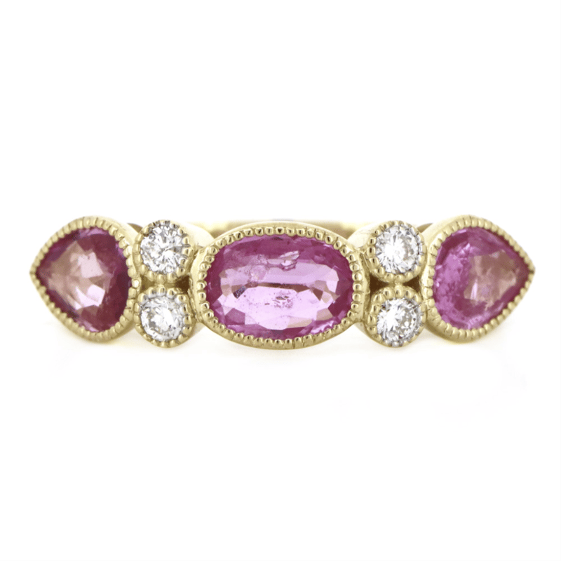 14K YELLOW GOLD, PINK SAPPHIRE AND DIAMOND, DRESS RING. The Centre Features, One Oval Cut, Bright Pink, Sapphire (0.69Ct, Light-Moderate Inclusions), Bezel Set. Accompanying The Centre Are, 4 Round Brilliant Cut, Diamonds (0.15Ct Tdw, H-J Colour, Si-I1 Clarity), Bezel Set. Additionally, 2 Pear Cut, Bright Pink, Sapphire (1.20Ct Tsw, Lightly Included), Bezel Set. Ring Size O 1/2. Valuations Provided by an Independent Third-Party Professional Not Directly Associated With Lloyds Auctions at AUD $$15,500.00 This valuation has been conducted by an independent third-party professional. The valuation amount is an assessment by the issuing valuer and does not reflect the auction value of the item. Any inquiries regarding the valuation should be directed to the issuing valuer (refer to contact details on the certificate), as Lloyds Auctions has no affiliation or influence over the valuation, the valuer, or the stated amount. Condition: Good - Refer Images 0 +329