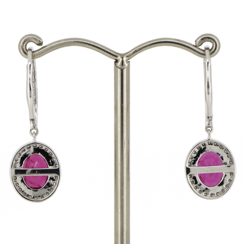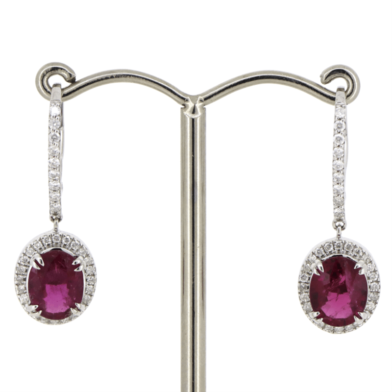 14K WHITE GOLD, RUBELLITE AND DIAMOND, HALO DROP EARRINGS. The Drops Feature, Two Oval Faceted Cut, Strong Pink, Rubellites (4.54Ct Tsw, Natural Inclusions), Shared Claw Set. Surrounding The Rubellites In Halos And Decorating Hooks Are, 66 Round Brilliant Cut, Diamonds (0.37Ct Tdw, G-J Colour, Si-P2 Clarity), Claw Set. The Earrings Feature 'C' Hook Closures. Valuations Provided by an Independent Third-Party Professional Not Directly Associated With Lloyds Auctions at AUD $$13,900.00 This valuation has been conducted by an independent third-party professional. The valuation amount is an assessment by the issuing valuer and does not reflect the auction value of the item. Any inquiries regarding the valuation should be directed to the issuing valuer (refer to contact details on the certificate), as Lloyds Auctions has no affiliation or influence over the valuation, the valuer, or the stated amount. Condition: Good - Refer Images 0 +334
