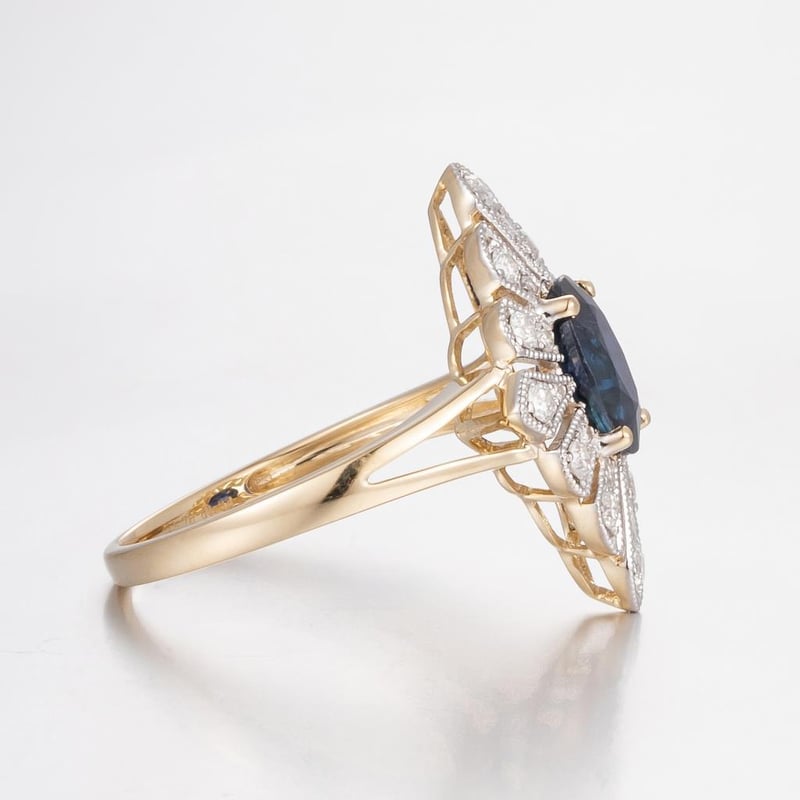 14CT YELLOW GOLD AUSTRALIAN SAPPHIRE AND DIAMOND ANTIQUE INSPIRED RING