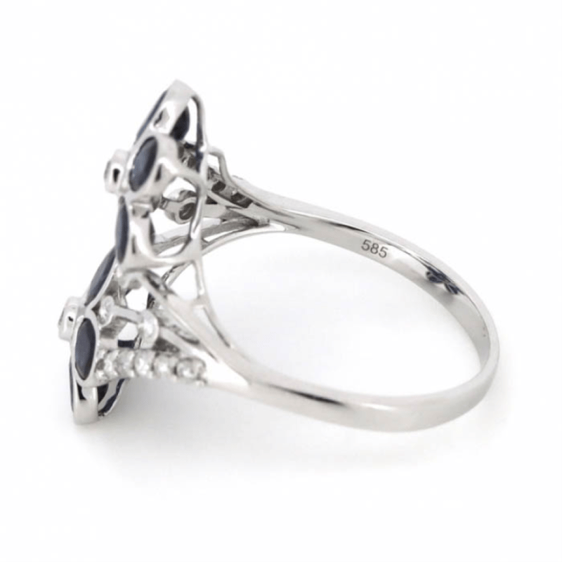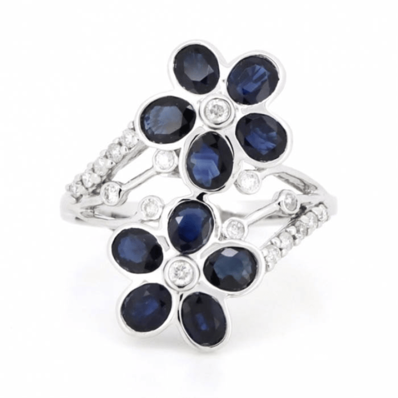14K WHITE GOLD, BLUE SAPPHIRE AND DIAMOND, FLOWER DESIGN RING. Representing The Flower Petals Are, 10 Oval Cut, Dark Royal Blue, Sapphires (2.00Ct Tsw, Included), Bezel Set. Centering The Flowers Are Decorating The Design Are, 18 Round Brilliant Cut, Diamonds (0.18Ct Tdw, J-K Colour, Si2-I2 Clarity), Bead/Bezel Set. Ring Size K 1/2. Valuations Provided by an Independent Third-Party Professional Not Directly Associated With Lloyds Auctions at AUD $$4,690.00This valuation has been conducted by an independent third-party professional. The valuation amount is an assessment by the issuing valuer and does not reflect the auction value of the item. Any inquiries regarding the valuation should be directed to the issuing valuer (refer to contact details on the certificate), as Lloyds Auctions has no affiliation or influence over the valuation, the valuer, or the stated amount. Condition: Good - Refer Images 0+1486