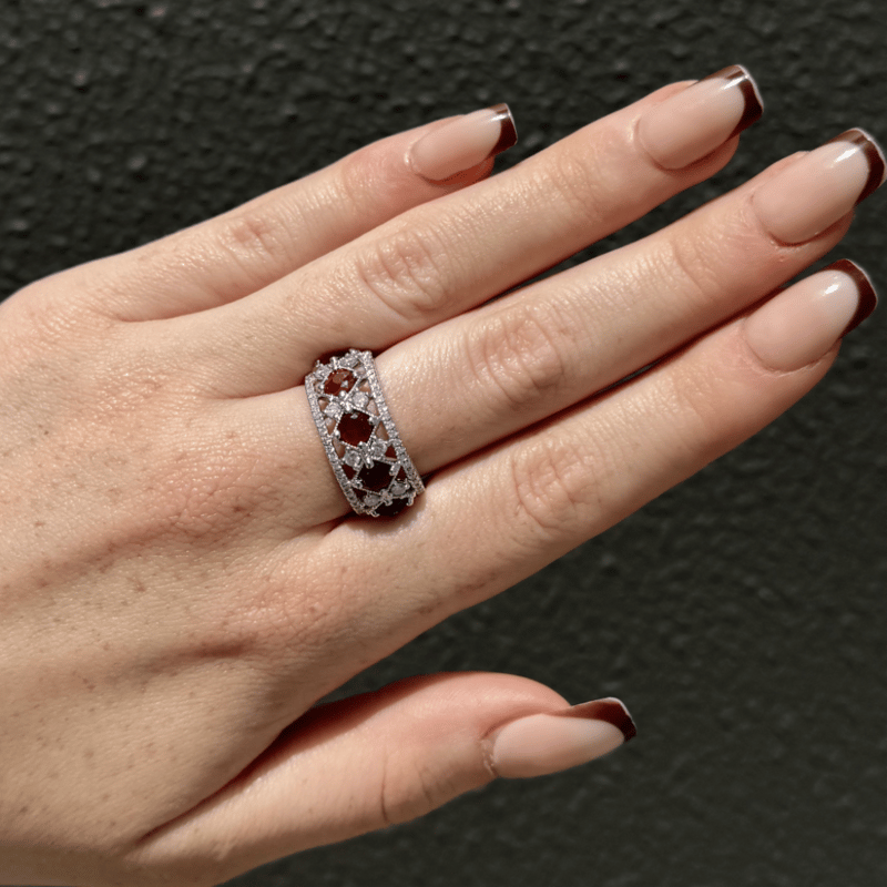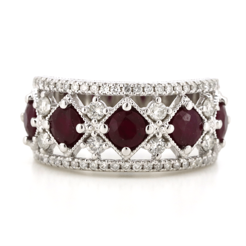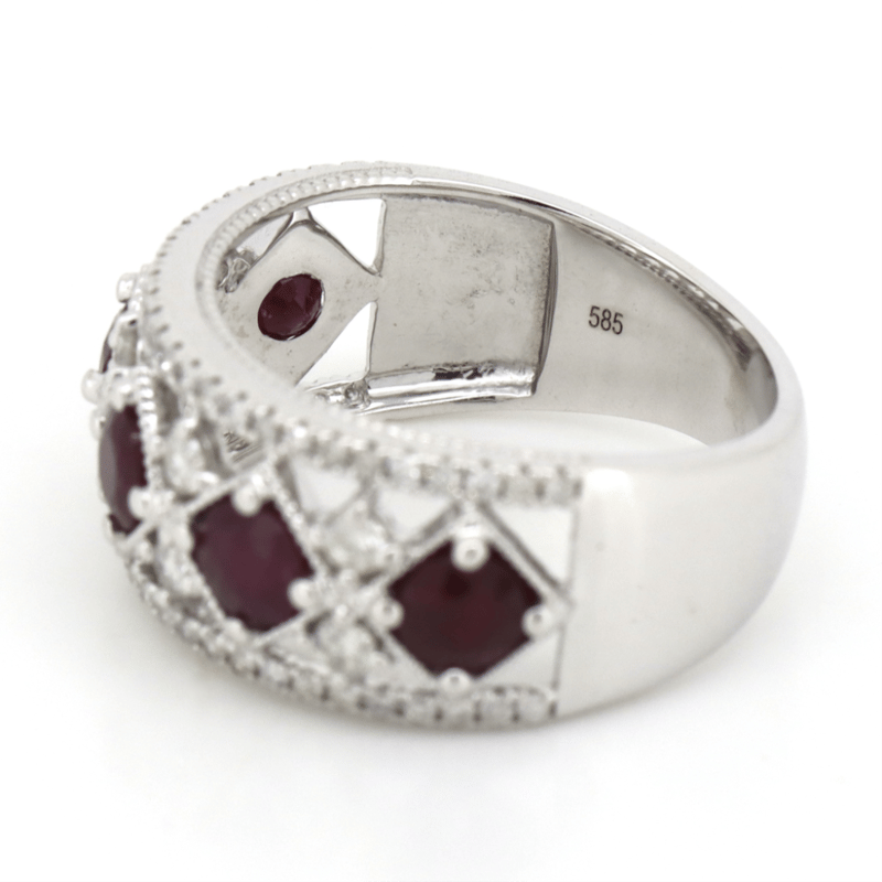 14K WHITE GOLD, RUBY AND DIAMOND, DRESS RING.