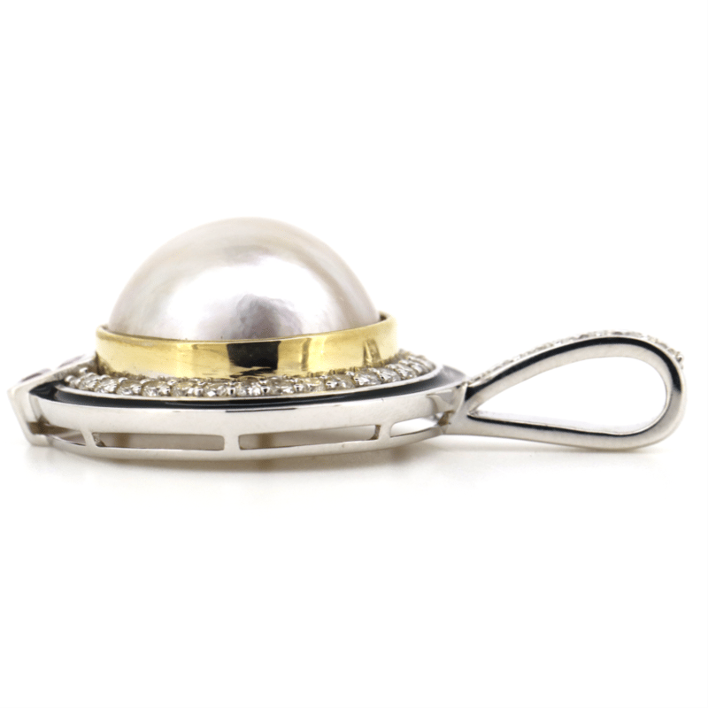 14K WHITE/YELLOW GOLD, WHITE CULTURED MABE PEARL, RUBY AND DIAMOND, PENDANT. The Centre Features, One Round Cabochon Cut, White/Cream, Cultured Mabe Pearl (9.16Ct Tsw, High Lustre, Minimum Blemishes), Bezel Set. Flanked By 2 Square Step Cut, Deep Moderate Pinkish-Red, Rubies (0.22Cttsw, Slightly Included), Bezel Set. Surrounding The Centre In A Halo And Decorating The Bail Are, 36 Round Brilliant Cut, Diamonds (0.60Ct Tdw, G-H Colour, Si1-Si2 Clarity), Bead/Channel Set. Valuations Provided by an Independent Third-Party Professional Not Directly Associated With Lloyds Auctions at AUD $$10,000.00This valuation has been conducted by an independent third-party professional. The valuation amount is an assessment by the issuing valuer and does not reflect the auction value of the item. Any inquiries regarding the valuation should be directed to the issuing valuer (refer to contact details on the certificate), as Lloyds Auctions has no affiliation or influence over the valuation, the valuer, or the stated amount. Condition: Good - Refer Images 0645925+228