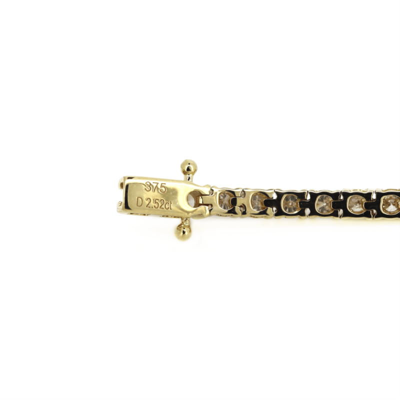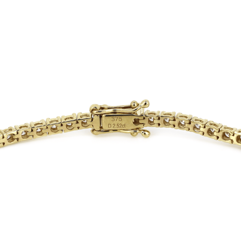 9K YELLOW GOLD AND 2.52CT TDW DIAMOND, TENNIS BRACELET. The Design Features, 61 Round Brilliant Cut, Diamonds (2.52Ct Tdw, G-J Colour, Si-I2 Clarity), 4 Claw Set. The Bracelet Has A Box Clasp With 2 Figure Eight Safety Clips. Bracelet Length Is 17Cm. Valuations Provided by an Independent Third-Party Professional Not Directly Associated With Lloyds Auctions at AUD $$32,800.00This valuation has been conducted by an independent third-party professional. The valuation amount is an assessment by the issuing valuer and does not reflect the auction value of the item. Any inquiries regarding the valuation should be directed to the issuing valuer (refer to contact details on the certificate), as Lloyds Auctions has no affiliation or influence over the valuation, the valuer, or the stated amount. Condition: Good - Refer Images 0645925+239