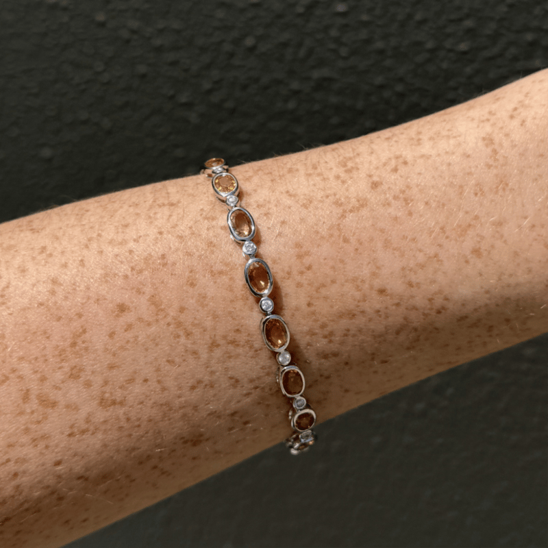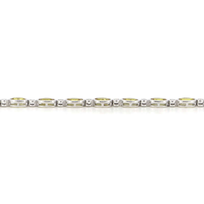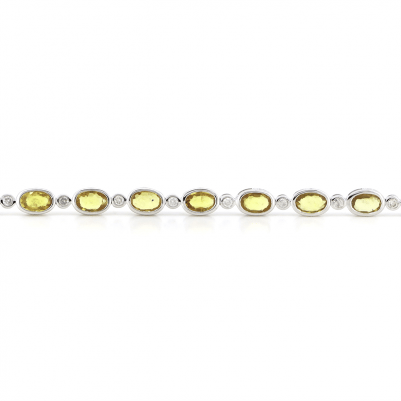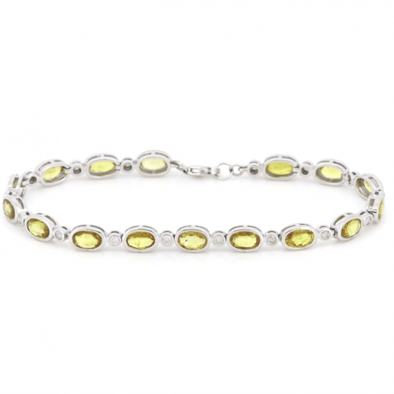The Bracelet Features, 16 Oval Cut, Moderate Yellow-Golden Mix, Ceylon Sapphires (8.08Ct Tsw, Slightly Included, Enhanced), Bezel Set. Alternating Between Are, 16 Round Brilliant Cut, Diamonds (0.53Ct Tdw, G-K Colour, P1+ Clarity), Bezel Set. The Bracelet Has A Lobster Claw Clasp. Bracelet Length Is 17Cm.