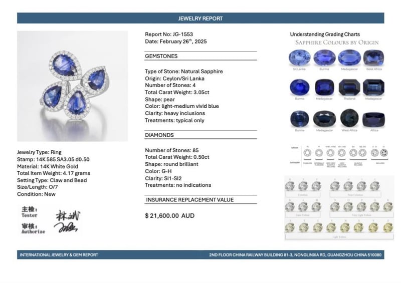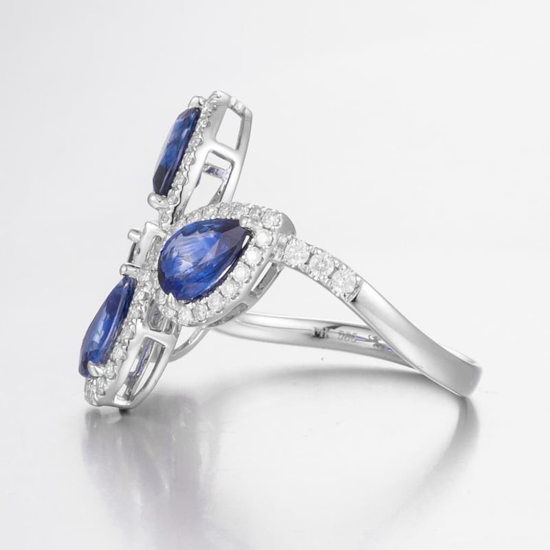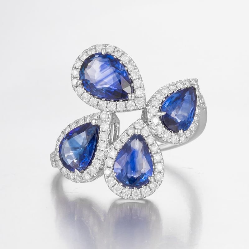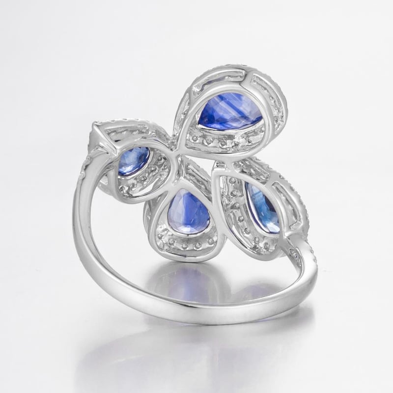 14CT WHITE GOLD CEYLON SAPPHIRE AND DIAMOND COCKTAIL RING Featuring Centre, 4 Pear Cut, Light-Medium Vivid Blue Ceylon Sapphires (3.05Ct Tsw, Heavy Inclusions), Claw Set, With 85 Round Brilliant Cut Diamonds (0.50Ct Tdw, G-H Colour, Si1-Si2 Clarity), Bead Set. Ring Size O. Valuations Provided by an Independent Third-Party Professional Not Directly Associated With Lloyds Auctions at AUD $21600This valuation has been conducted by an independent third-party professional. The valuation amount is an assessment by the issuing valuer and does not reflect the auction value of the item. Any inquiries regarding the valuation should be directed to the issuing valuer (refer to contact details on the certificate), as Lloyds Auctions has no affiliation or influence over the valuation, the valuer, or the stated amount. Condition: Good - Refer Images 0586382+1811