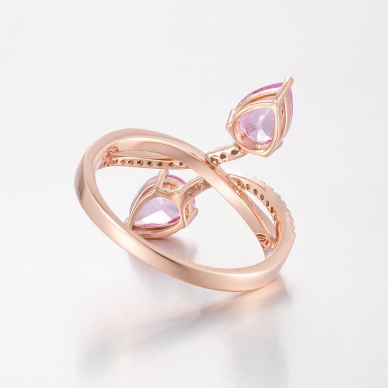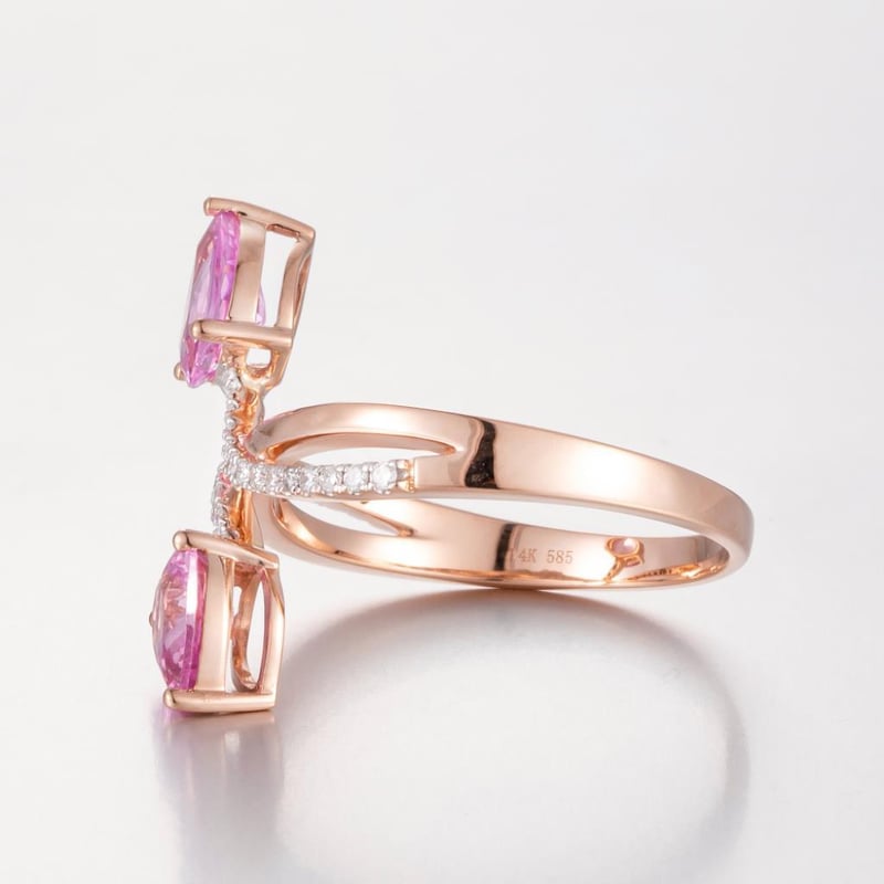 14CT ROSE GOLD PINK CEYLON SAPPHIRE AND DIAMOND DRESS RING Featuring Centre, 2 Pear Cut, Blossom Pink Ceylon Sapphires (1.71Ct Tsw, Slightly Included), Claw Set, With 26 Round Brilliant Cut Diamonds (0.13Ct Tdw, G-H Colour, Vs1-Vs2 Clarity), Bead Set. Ring Size O. Valuations Provided by an Independent Third-Party Professional Not Directly Associated With Lloyds Auctions at AUD $19400This valuation has been conducted by an independent third-party professional. The valuation amount is an assessment by the issuing valuer and does not reflect the auction value of the item. Any inquiries regarding the valuation should be directed to the issuing valuer (refer to contact details on the certificate), as Lloyds Auctions has no affiliation or influence over the valuation, the valuer, or the stated amount. Condition: Good - Refer Images 0586382+1828