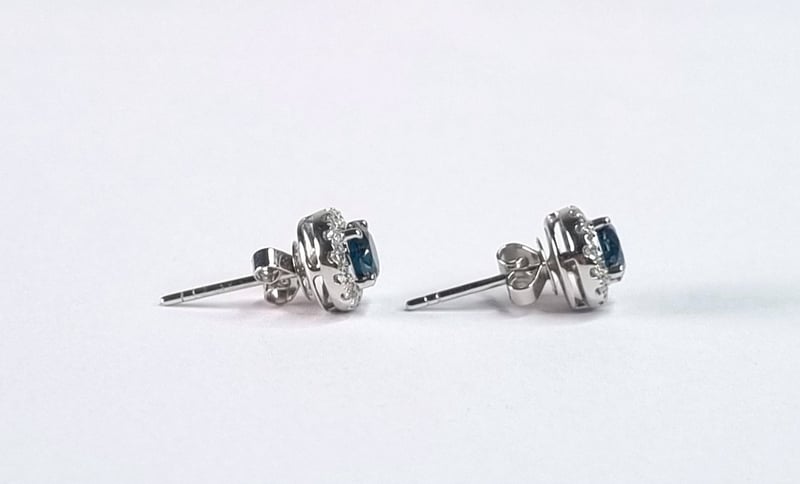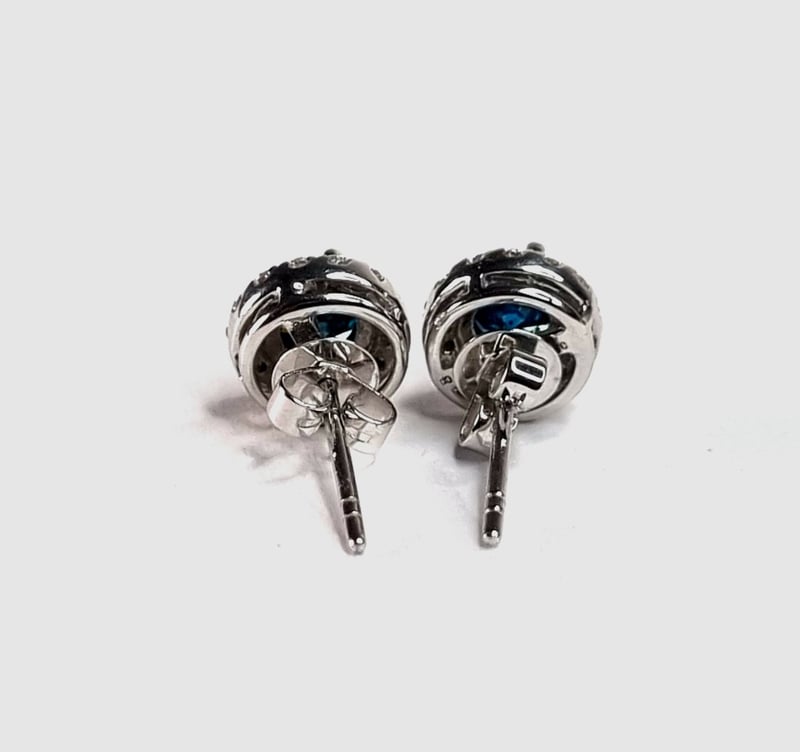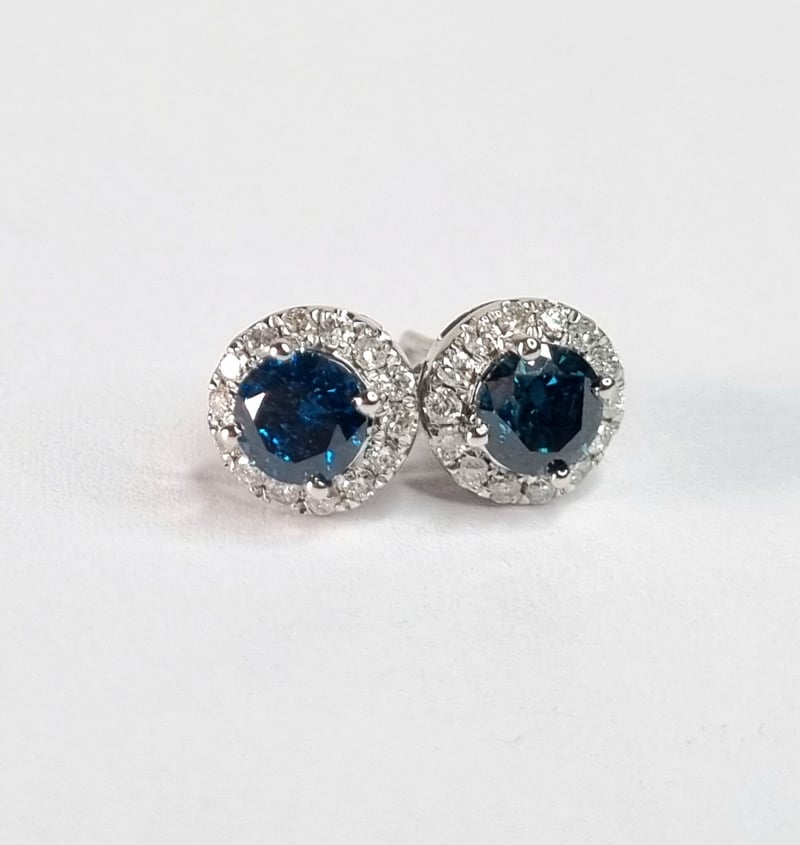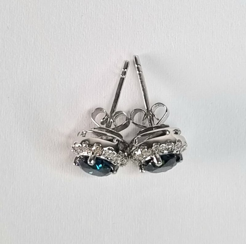 14K WHITE GOLD EARRINGS WITH 2 FANCY BLUE DIAMONDS & 28 BRILLIANT CUT DIAMONDS2 Fancy Blue Diamonds, Round Brilliant Cut, Colour Treated, Clarity I-1, Individually Four Claw Set, Centering 28 Round Brilliant Cut Diamonds, Micro-Claw Set, Colour H-I, Clarity Si2-I2Accompanied By Gemley Valuations Certificate 0818194Total Item Weight: 2.01gDimensions: Height: 7.71mm, Width: 7.71mmCondition: Good - Refer To ImagesThis valuation has been conducted by an independent third-party professional. The valuation amount is an assessment by the issuing valuer and does not reflect the auction value of the item.Any inquiries regarding the valuation should be directed to the issuing valuer (refer to contact details on the certificate), as Lloyds Auctions has no affiliation or influence over the valuation, the valuer, or the stated amount.Insurance Replacement Valuation Amount: $6,360.00FC163076+2