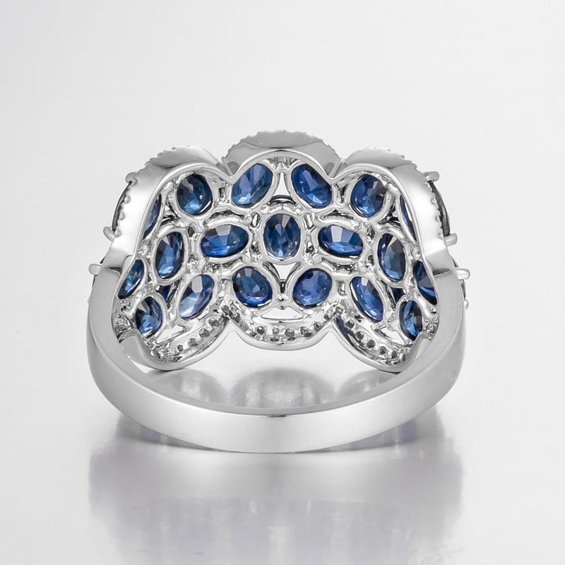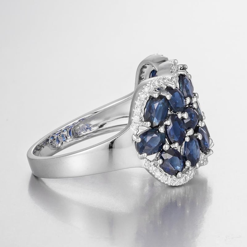 14CT WHITE GOLD AUSTRALIAN SAPPHIRE AND DIAMOND CLUSTER RING Featuring Centre, 19 Oval Cut, Deep Royal Blue Australian Sapphires (4.27Ct Tsw, Moderately Included), Claw Set, With 64 Round Brilliant Cut Diamonds (0.14Ct Tdw, F-G Colour, Vs1-Si1 Clarity), Pip Claw Set. Ring Size O. Valuations Provided by an Independent Third-Party Professional Not Directly Associated With Lloyds Auctions at AUD $22,000This valuation has been conducted by an independent third-party professional. The valuation amount is an assessment by the issuing valuer and does not reflect the auction value of the item. Any inquiries regarding the valuation should be directed to the issuing valuer (refer to contact details on the certificate), as Lloyds Auctions has no affiliation or influence over the valuation, the valuer, or the stated amount. Condition: Good - Refer Images 0586334+1689